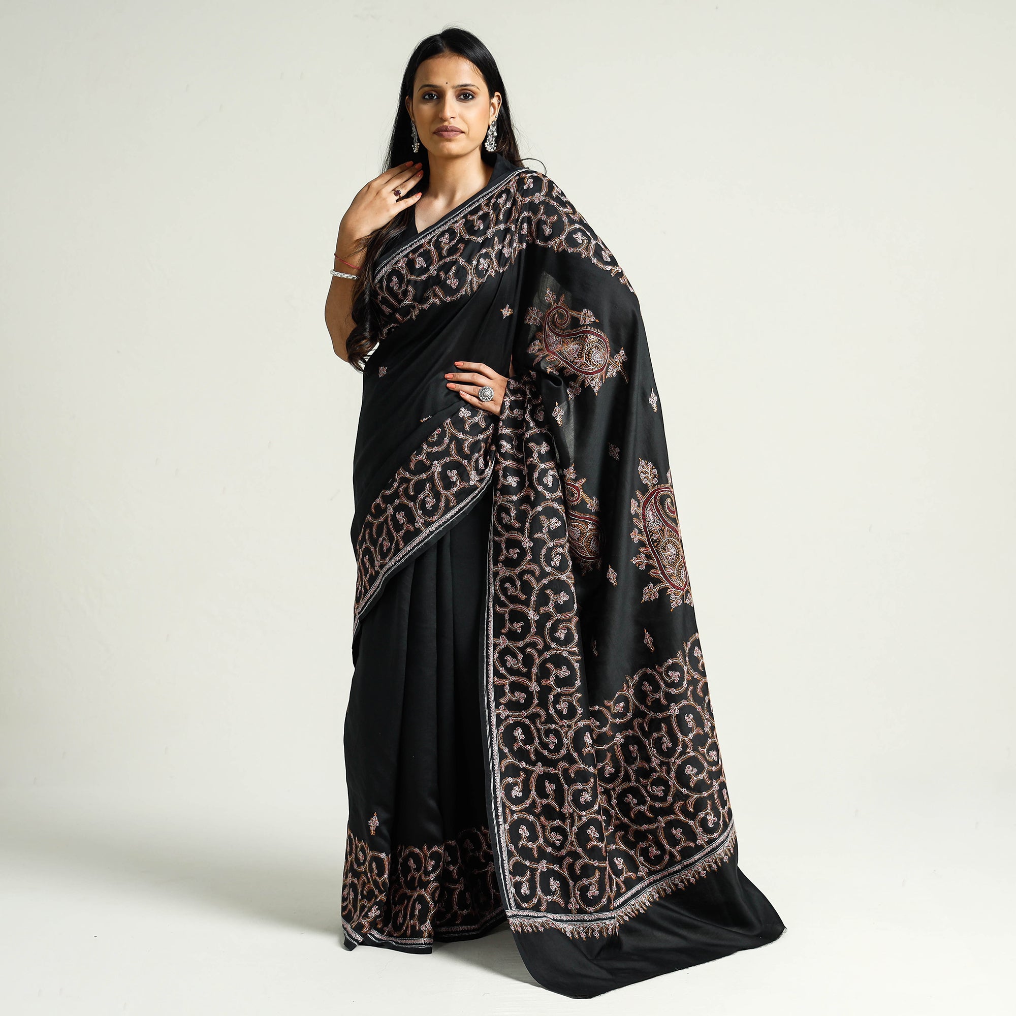 Black - Sozni Heavy Hand Embroidery Kashmiri Merino Wool Pheran 19