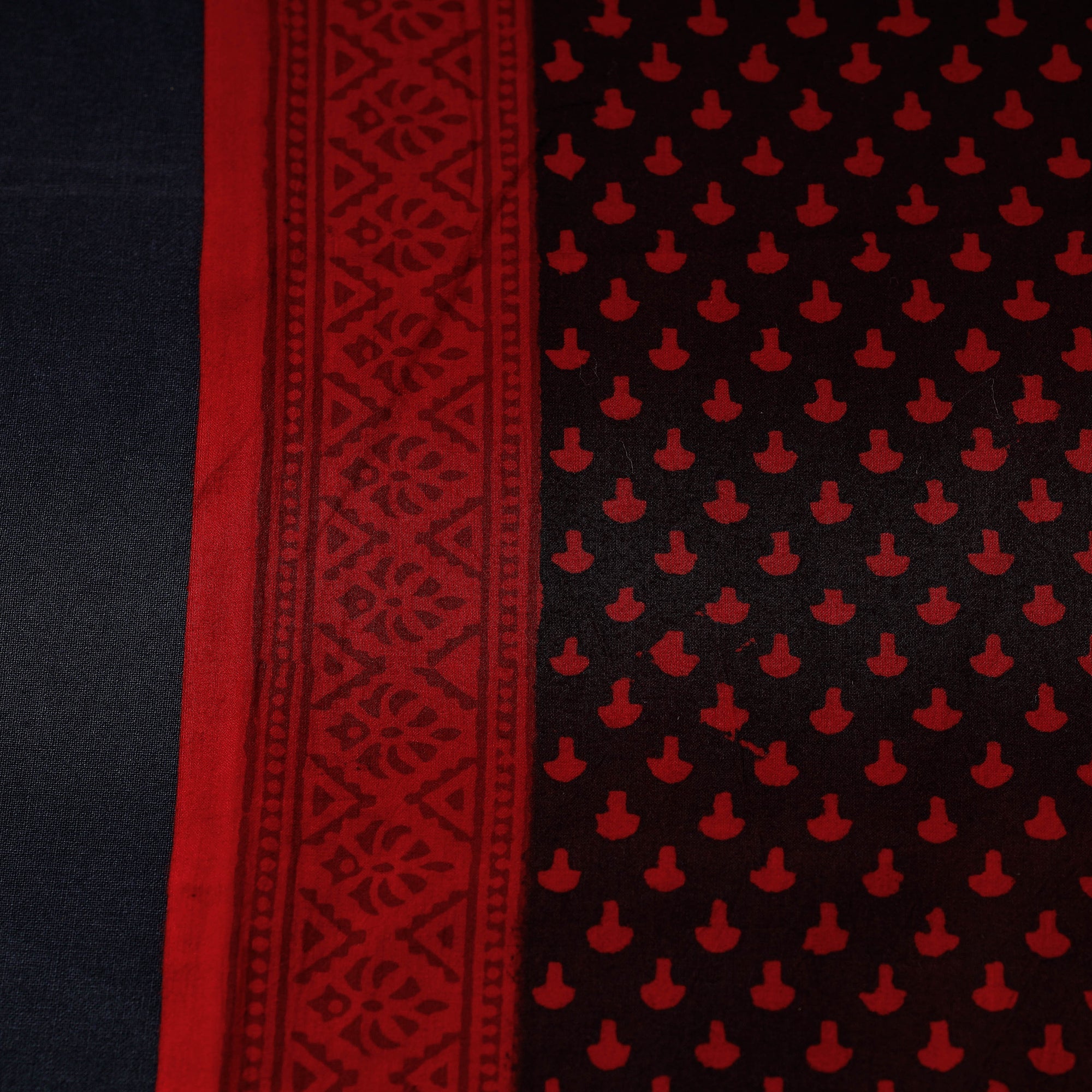Fine quality black bagh hand block printed natural dyed cotton fabric. Meticulously made by master artisan Mohammed Rafik Ji Khatri, who practices the age-old art of Bagh block printing in the Dhar district of Madhya Pradesh, this fabric is a testament to skilled artistry. Using natural dyes and following traditional processes, each motif and pattern on the fabric is carefully hand block printed, creating a unique and exquisite design