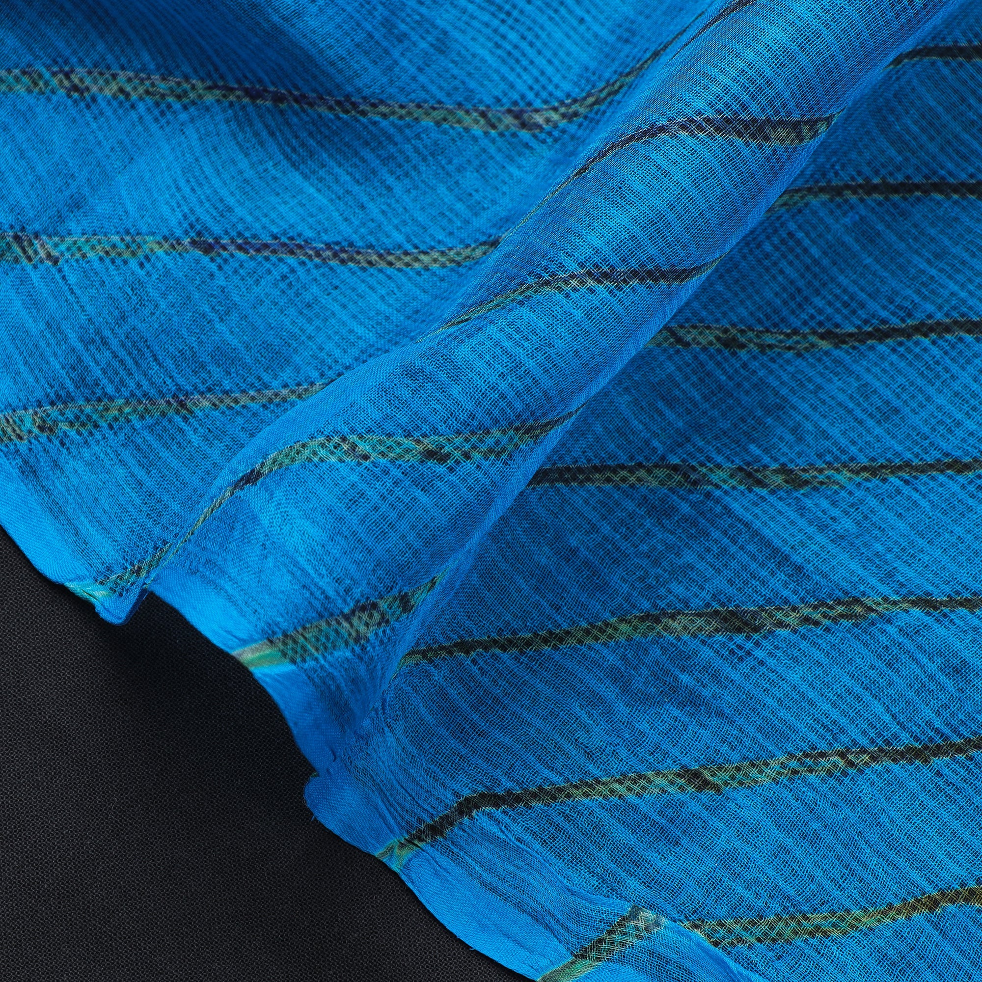 Fine quality original blue leheriya tie-dye kota doria silk fabric by Badshah Miyan. This fabric features wavy patterns created using the traditional leheriya tie & dye technique, dyed with azo-free dyes. It is handcrafted by the master artisan family of Badshah Miyan from the state of Rajasthan, known for their expertise in this traditional art form. Made from high-quality Kota Doria silk, this fabric is lightweight, sheer, and perfect for creating stylish and unique garments. Add a touch of Rajasthan's rich cultural heritage to your wardrobe with this exquisite leheriya tie-dye kota doria fabric.