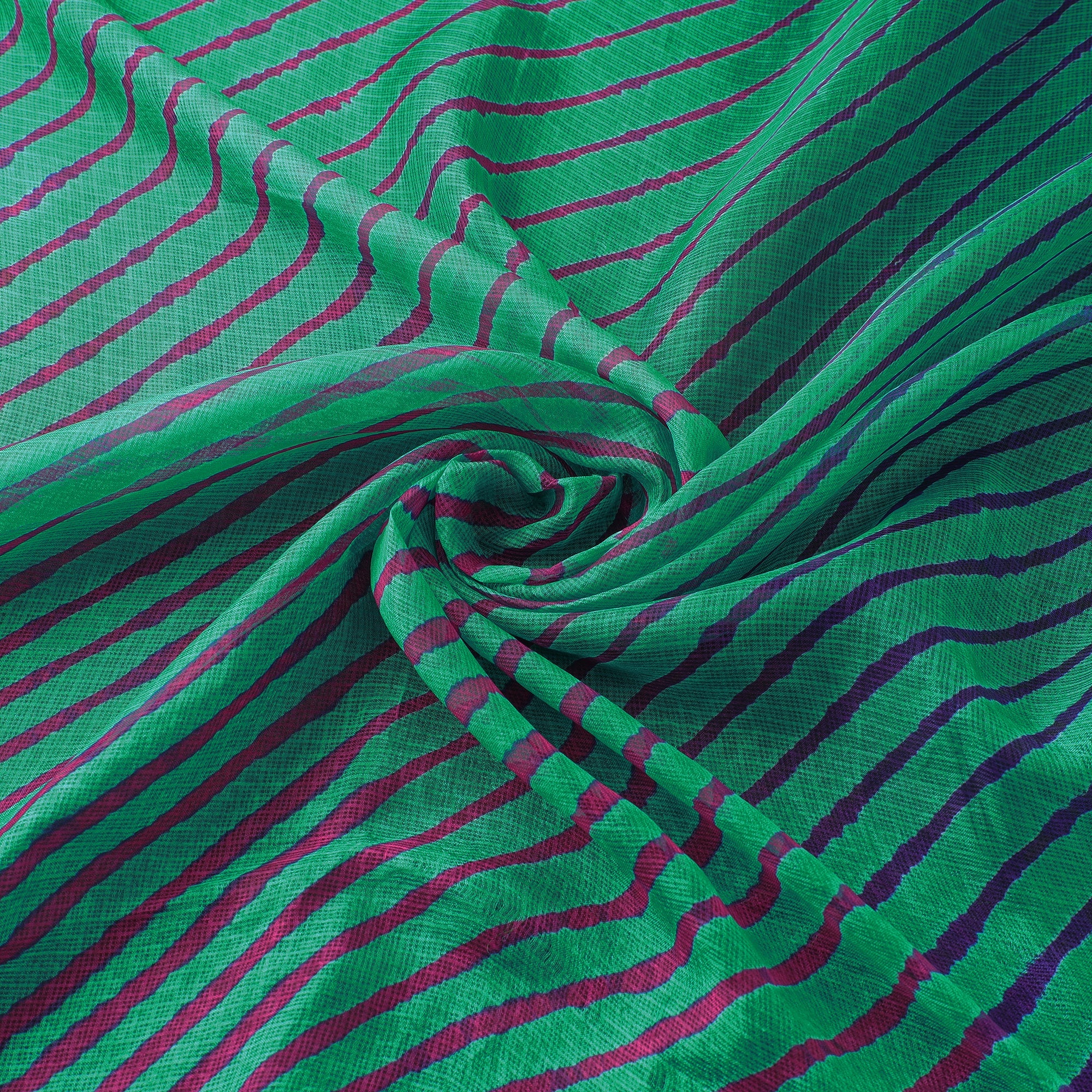 Fine quality green original leheriya tie-dye kota doria silk fabric by Badshah Miyan. This fabric features wavy patterns created using the traditional leheriya tie & dye technique, dyed with azo-free dyes. It is handcrafted by the master artisan family of Badshah Miyan from the state of Rajasthan, known for their expertise in this traditional art form. Made from high-quality Kota Doria silk, this fabric is lightweight, sheer, and perfect for creating stylish and unique garments. Add a touch of Rajasthan's rich cultural heritage to your wardrobe with this exquisite leheriya tie-dye kota doria fabric.