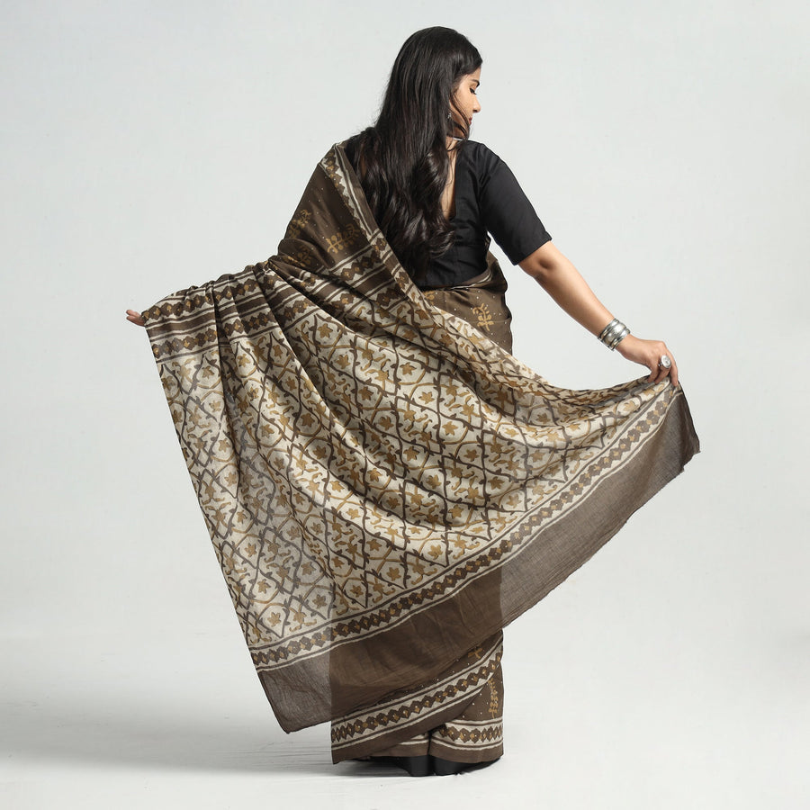 Brown - Akola Block Printed Cotton Blouse Piece 128