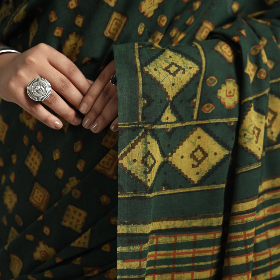 Fine quality traditional akola block printed cotton saree made using natural dyes through traditional process of hand block printing practised by the master artisans in Akola village of Rajasthan. Pair it with your favorite blouse and accessories to create a stunning and culturally rich look that's bound to turn heads.