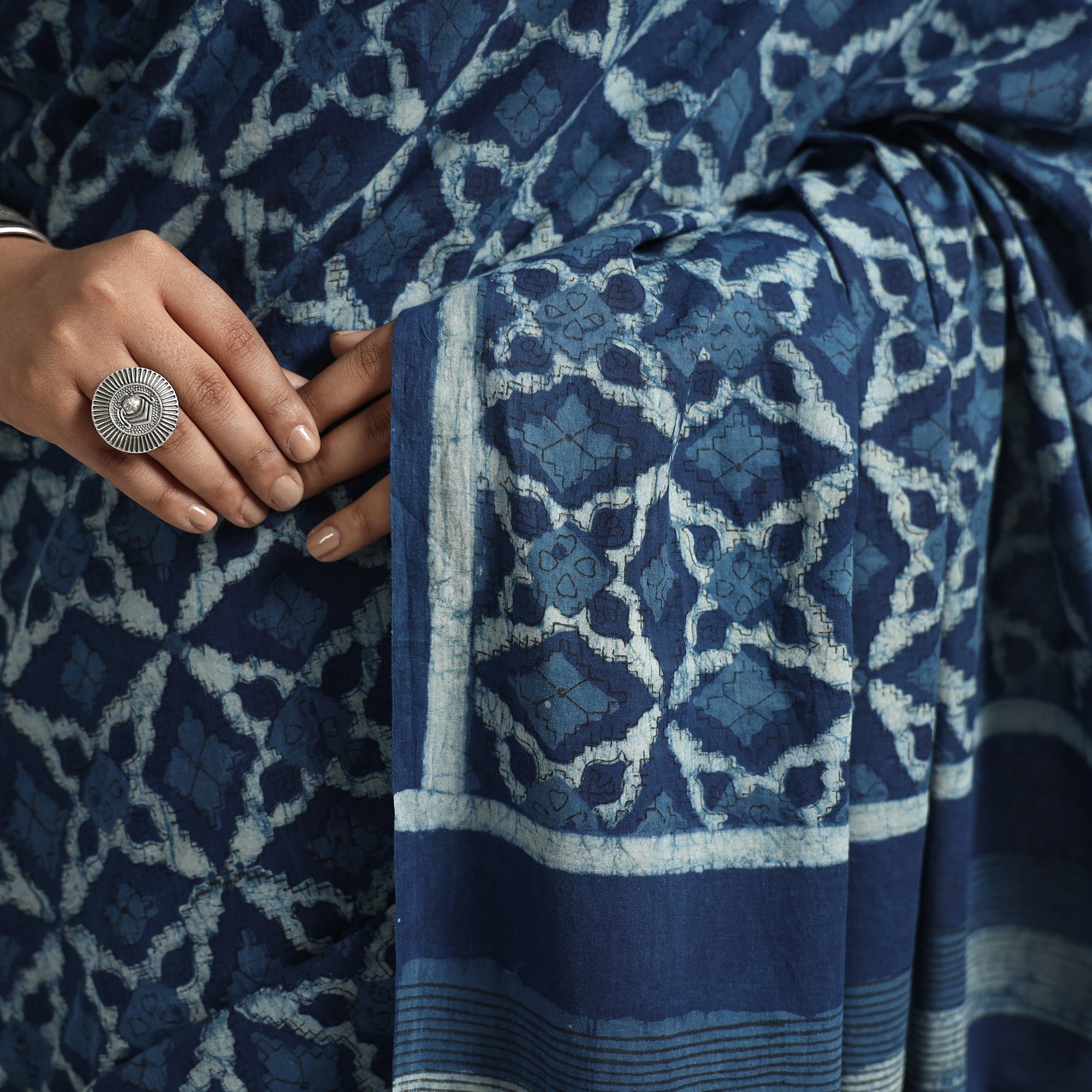 Fine quality traditional akola block printed cotton saree made using natural dyes through traditional process of hand block printing practised by the master artisans in Akola village of Rajasthan. Pair it with your favorite blouse and accessories to create a stunning and culturally rich look that's bound to turn heads.