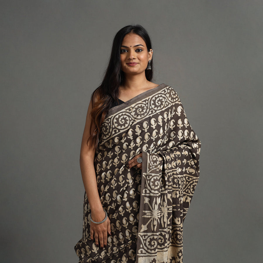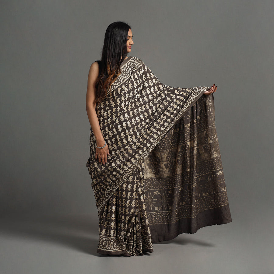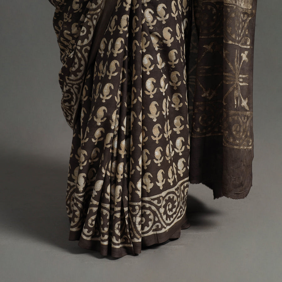 Elevate your style with this brown natural dyed block print cotton pipad saree. The use of natural dyes adds to the quality of the product, making it eco-friendly and safe for you to wear. It's made using a traditional mud-resist process by Chhipa Azhar, a renowned artisan from Pipar, Rajasthan. which is then block-printed with intricate designs using a wooden block. The result is a beautifully crafted saree that is unique and reflects the rich cultural heritage of Rajasthan.