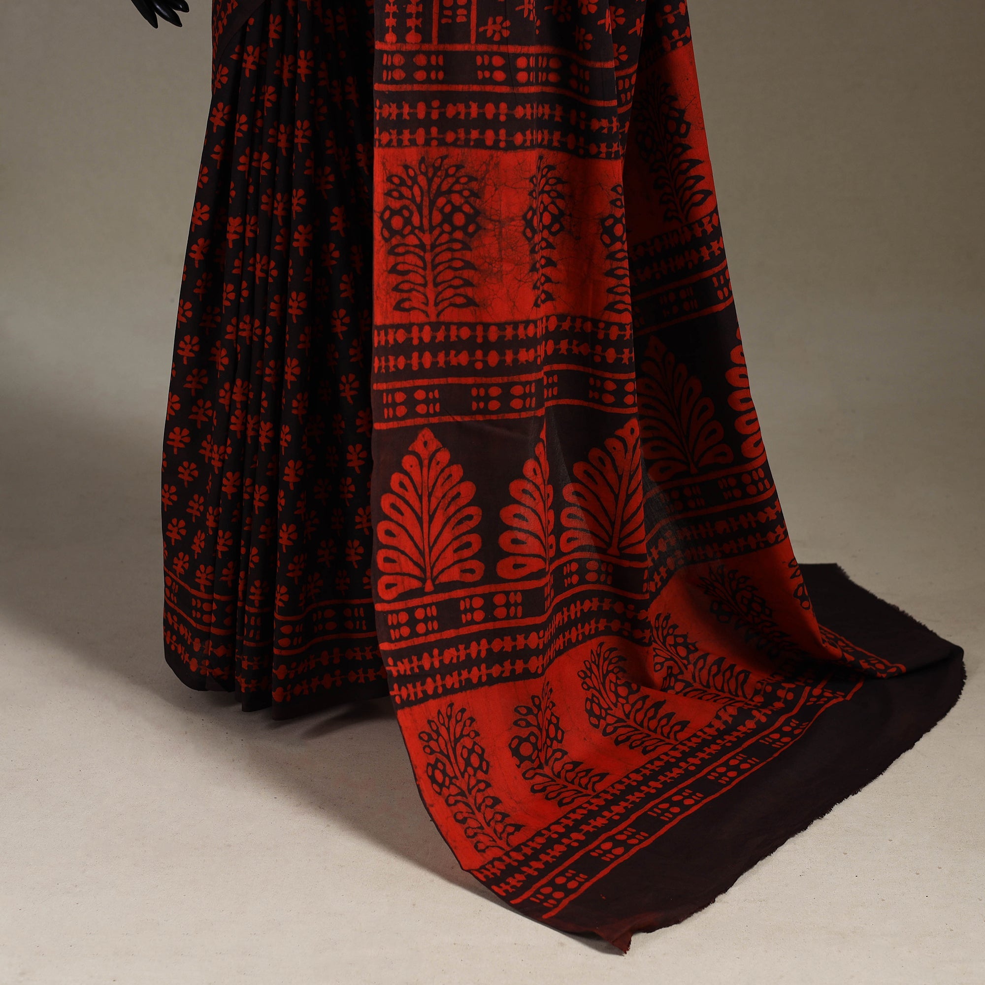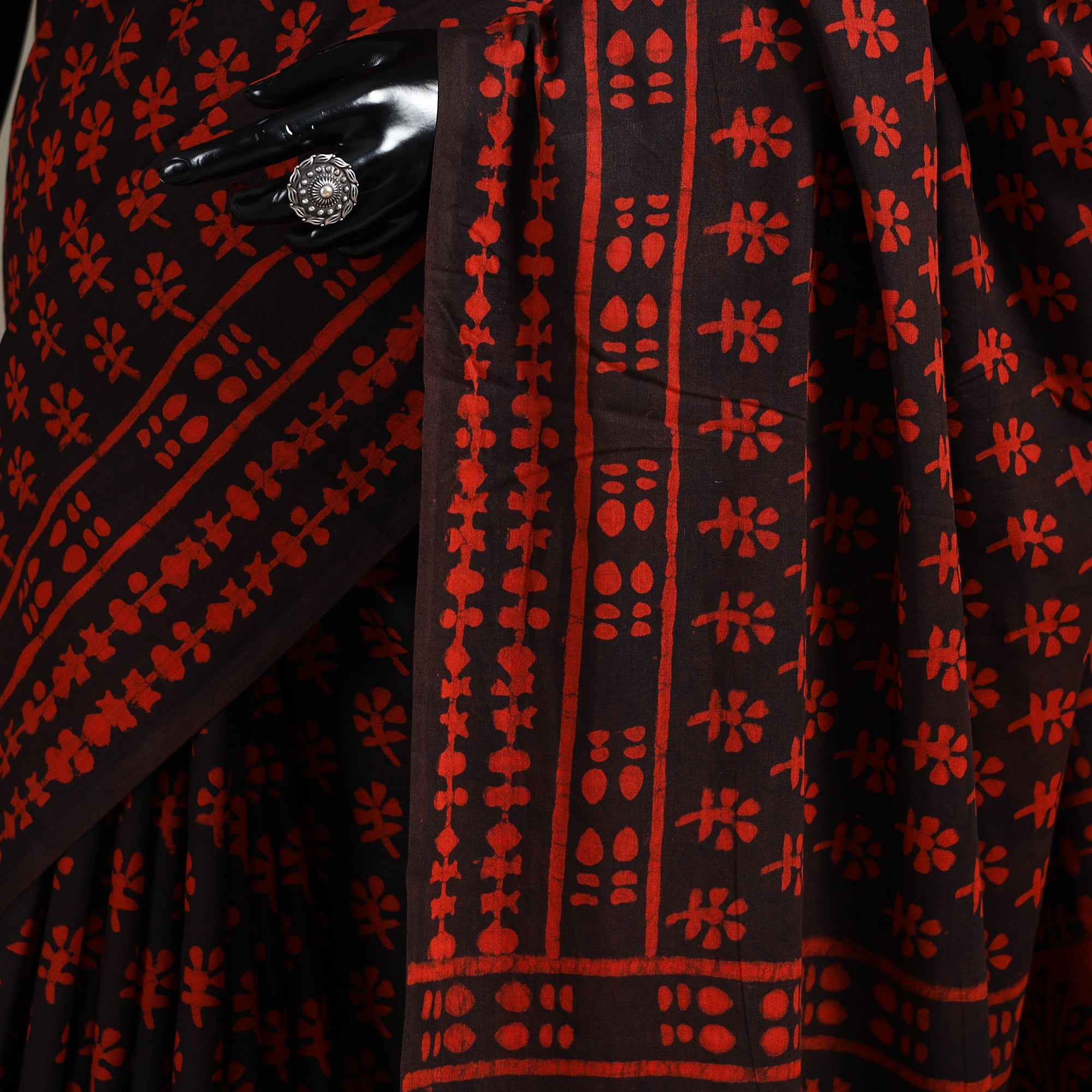 Elevate your style with this exquisite red pipad hand block printed cotton saree. The use of natural dyes adds to the quality of the product, making it eco-friendly and safe for you to wear. It's made using a traditional mud-resist process by Chhipa Yasin Shahabuddin, a renowned artisan from Pipar, Rajasthan. The process involves using mud to create a resist on the fabric, which is then block-printed with intricate designs using a wooden block. The result is a beautifully crafted saree that is unique and reflects the rich cultural heritage of Rajasthan.