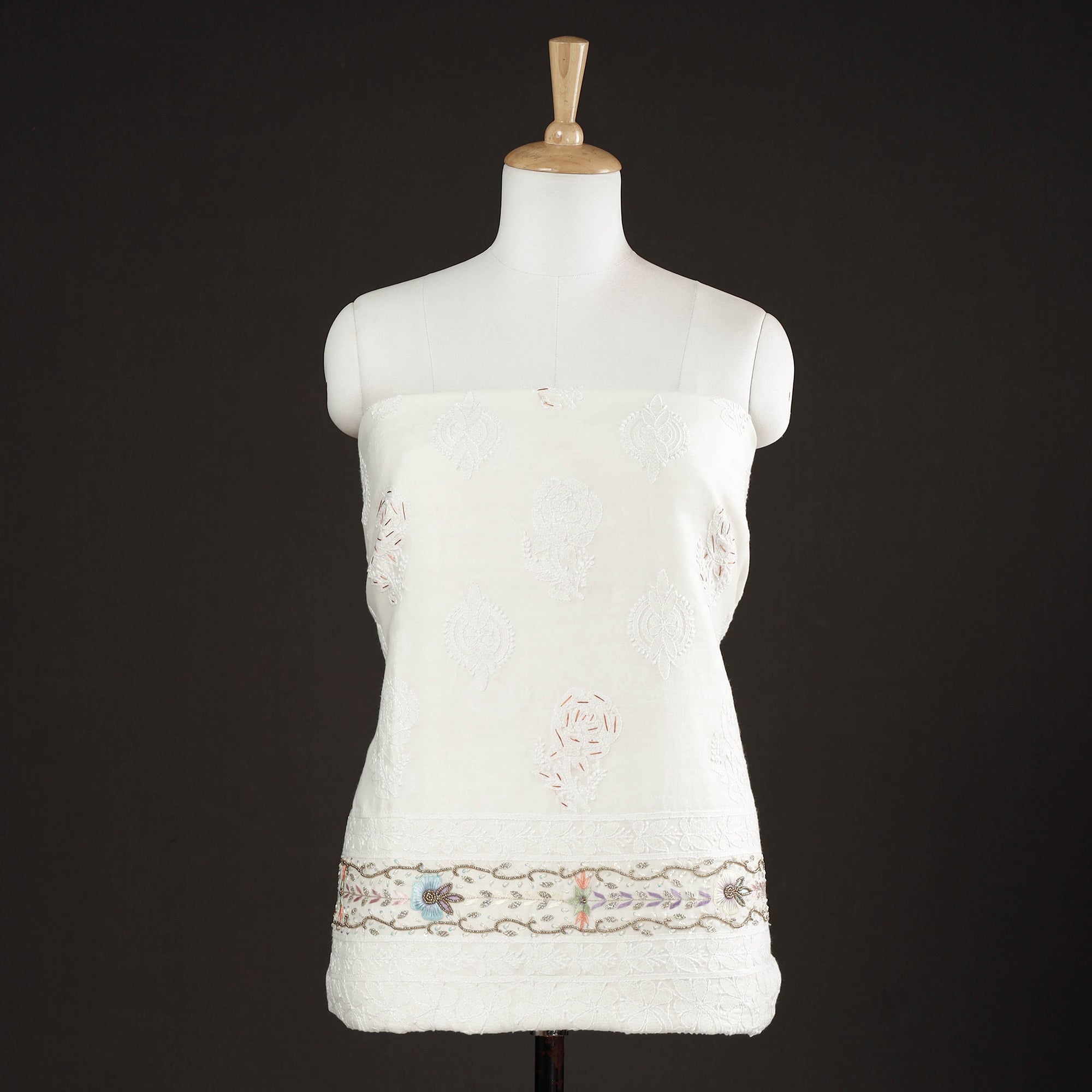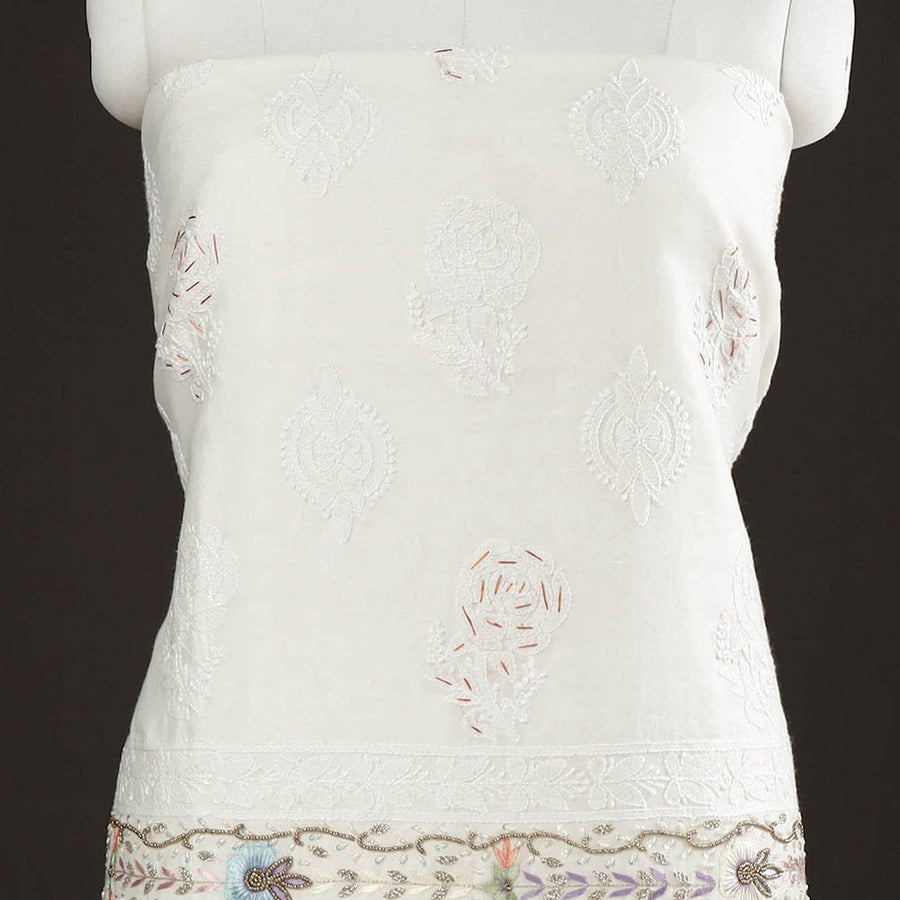 Lucknowi Hand Embroidered Chikankari Mul Cotton 2pc Unstitched Dress Material 17