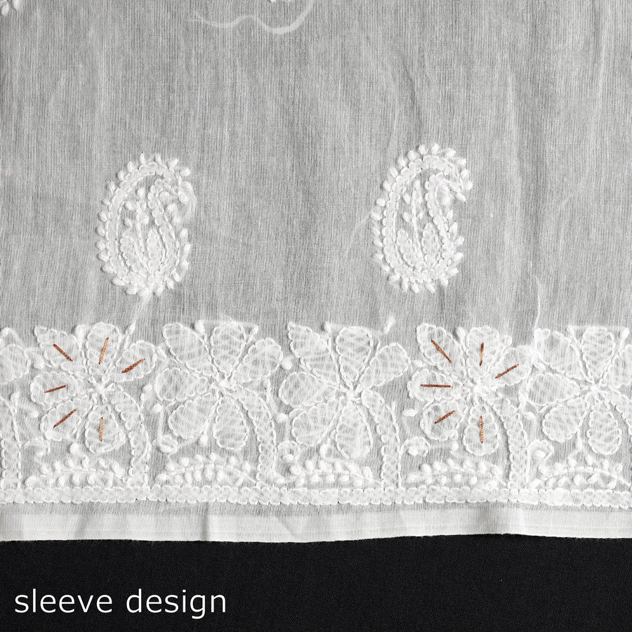 Chikankari is a popular embroidery work done with the help of a white cotton thread on fine white cotton material. It is also known as shadow work. Chikan is an extremely delicate and artfully done hand embroidery on fabrics like muslin, silk, chiffon, organza, net, etc