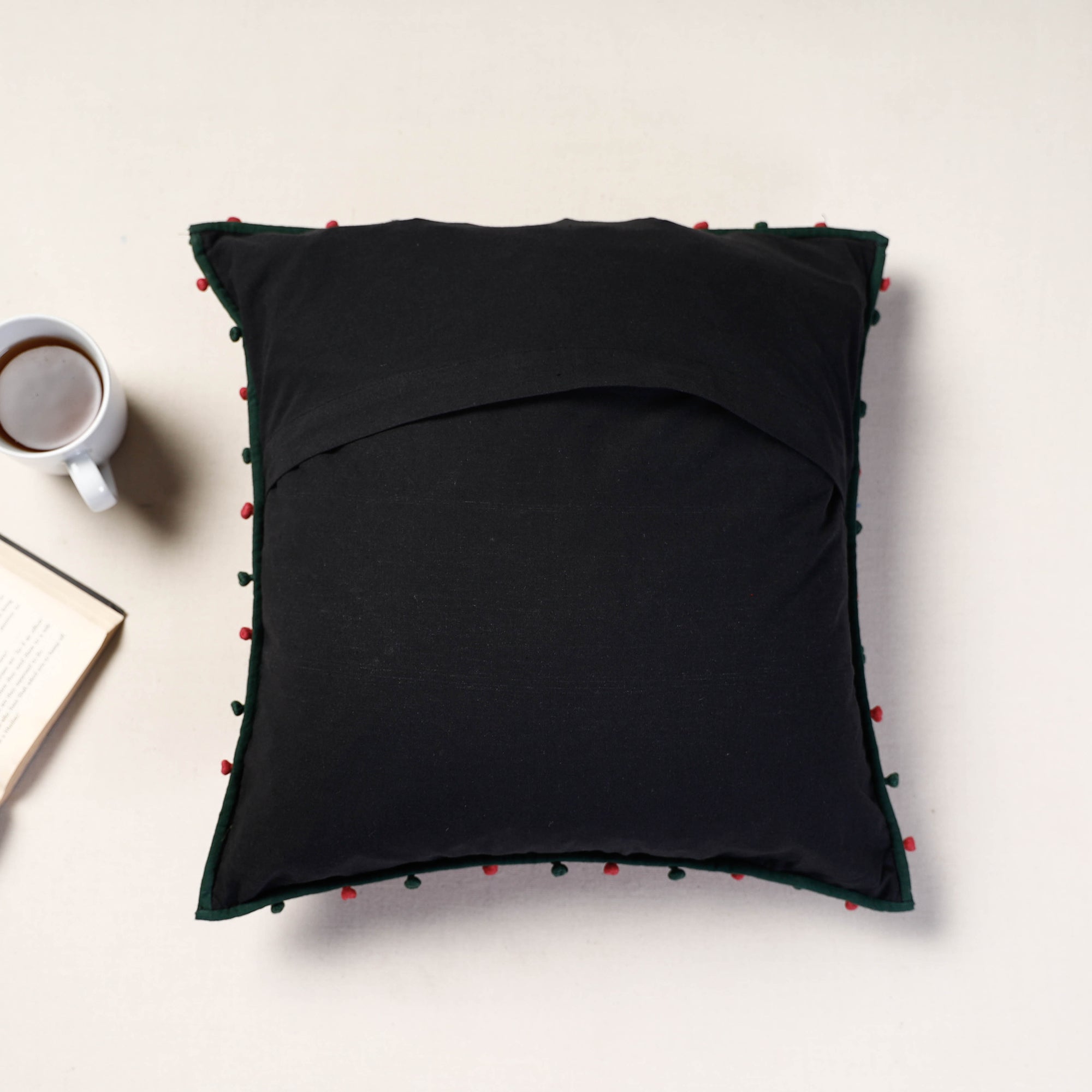 Material Fine quality lambani hand embroidery cotton cushion cover handcrafted by the artisans of Sandur Kushala Kala Kendra from Karnataka. It has foam layer lining inside. Lambani embroidery is an amalgam of pattern darning, mirror work, cross stitch, and overlaid and quilting stitches.