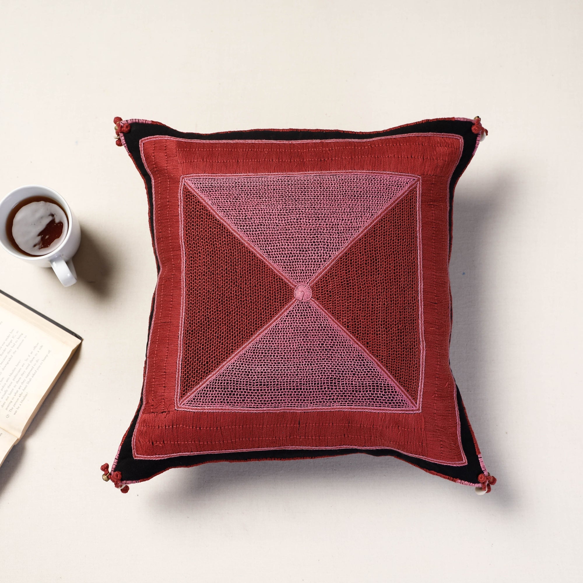 Red - Lambani Embroidery Cushion Cover (16 x 16 in)