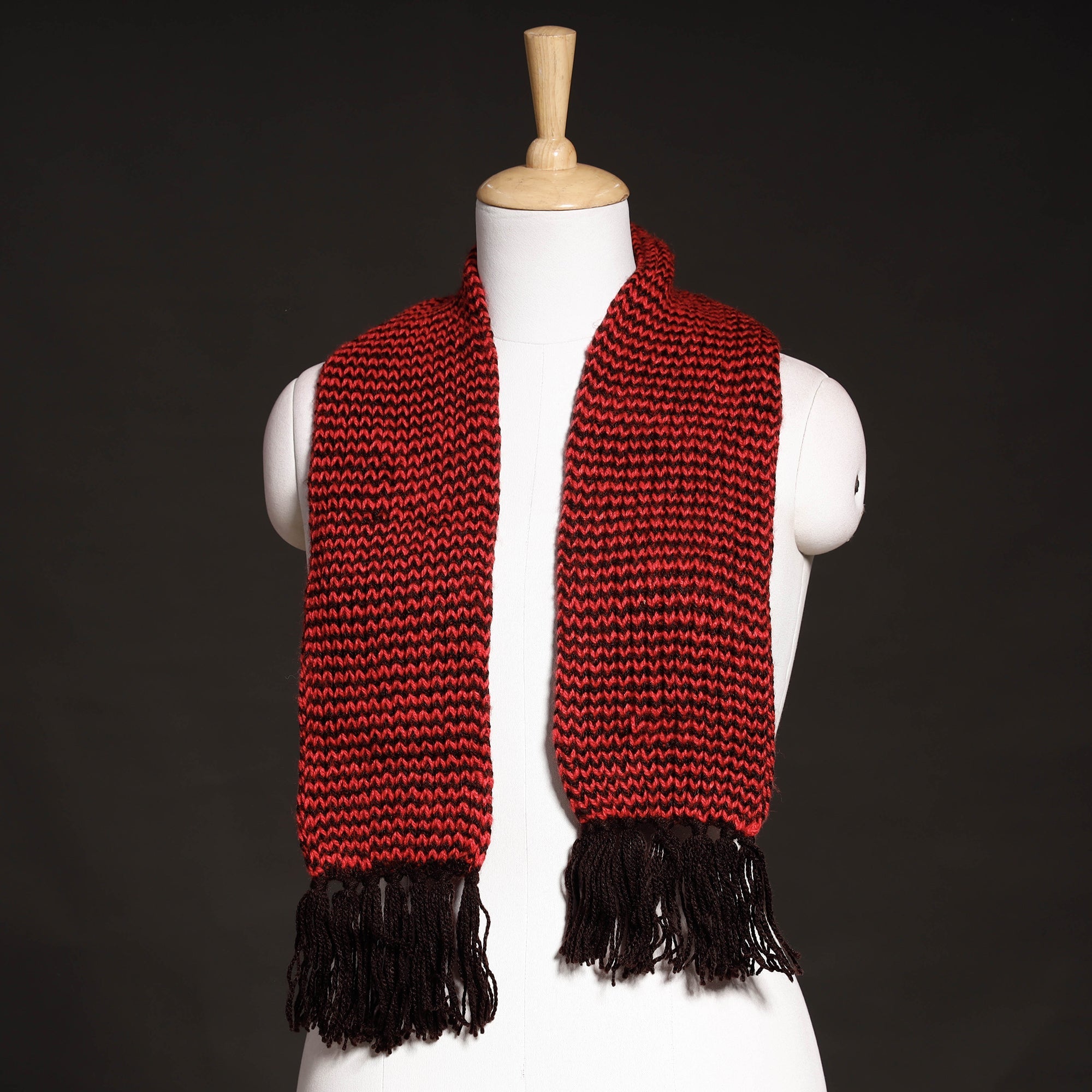 Fine quality red hand-knitted woolen muffler by Kilmora. Made out of acrylic wool, this muffler has been hand knitted by artisans in Buribana in Kumaon, Uttarakhand. Kilmora uses traditional techniques with contemporary design sensibilities to create a constantly evolving collection using acrylic wool or natural fibers and hand-spun wool.
