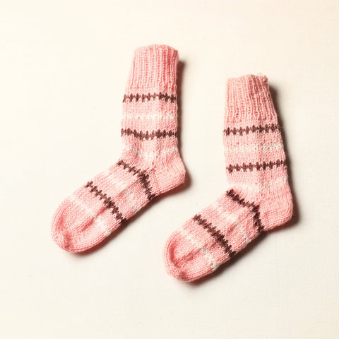 Fine quality hand-knitted peach woolen socks by Kilmora. Made out of acrylic wool, these socks have been hand knitted by artisans in Buribana in Kumaon, Uttarakhand. Kilmora uses traditional techniques with contemporary design sensibilities to create a constantly evolving collection using acrylic wool or natural fibers and hand-spun wool.