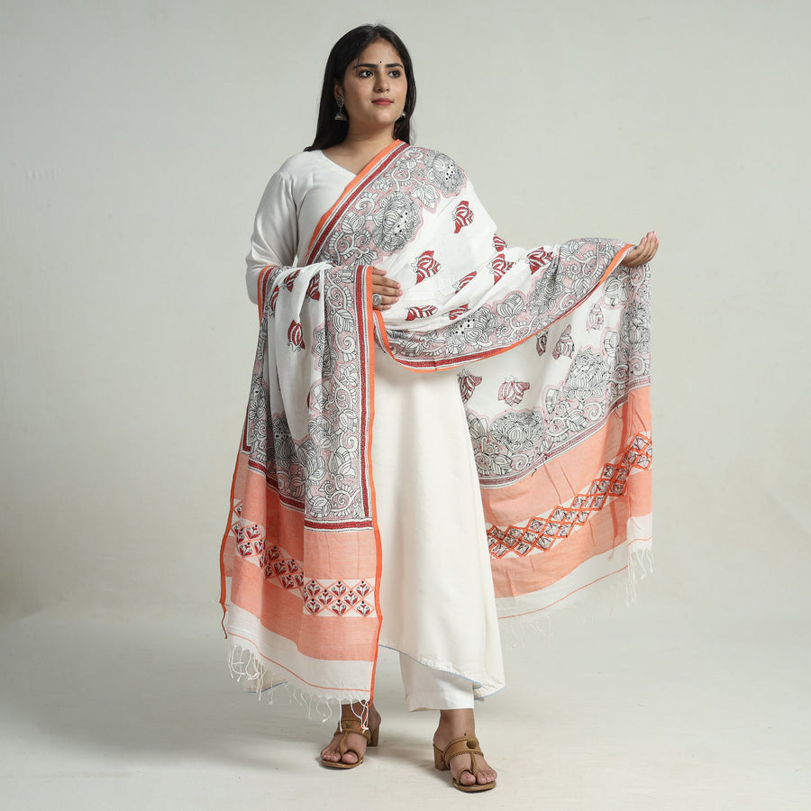 This exquisite kantha hand embroidery pure cotton handloom dupatta is made using Bengal's traditional craft technique of kantha done by master artisan Takdira Begum from Bolpur, West Bengal. Each stitch narrates the region's rich cultural heritage. This dupatta is perfect for both casual and formal wear, it's a versatile addition to your wardrobe.