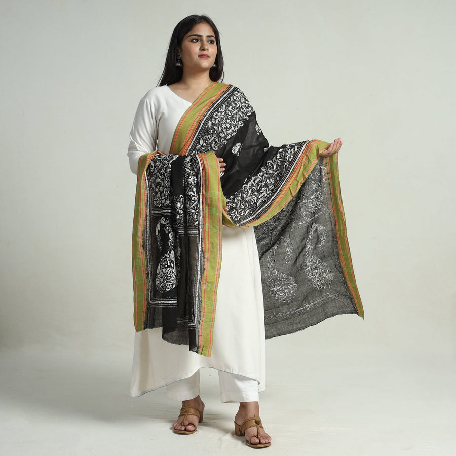 This exquisite kantha hand embroidery pure cotton handloom dupatta is made using Bengal's traditional craft technique of kantha done by master artisan Takdira Begum from Bolpur, West Bengal. Each stitch narrates the region's rich cultural heritage. This dupatta is perfect for both casual and formal wear, it's a versatile addition to your wardrobe.