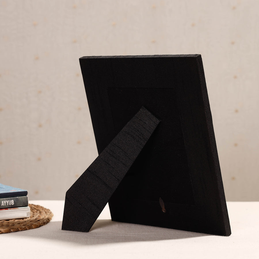 Intricate and artfully done lucknowi chikankari hand embroidered poly silk cover photo frame. This beautiful photo frame is made from mdf wood and covered with intricate chikankari embroidery poly silk fabric. Chikankari is a traditional textile decorative from Lucknow. It is very delicate and intricate hand embroidery work where thread is embroidered of cool, pastel shades on light fabrics.