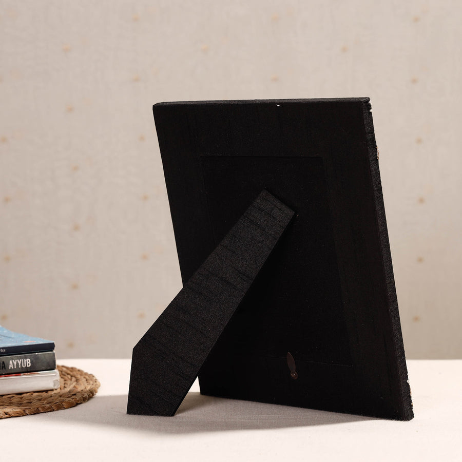Intricate and artfully done lucknowi chikankari hand embroidered poly silk cover photo frame. This beautiful photo frame is made from mdf wood and covered with intricate chikankari embroidery poly silk fabric. Chikankari is a traditional textile decorative from Lucknow. It is very delicate and intricate hand embroidery work where thread is embroidered of cool, pastel shades on light fabrics.