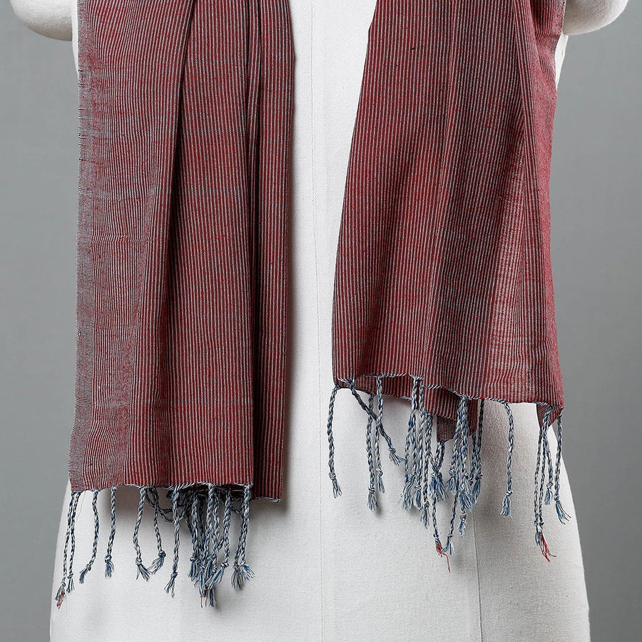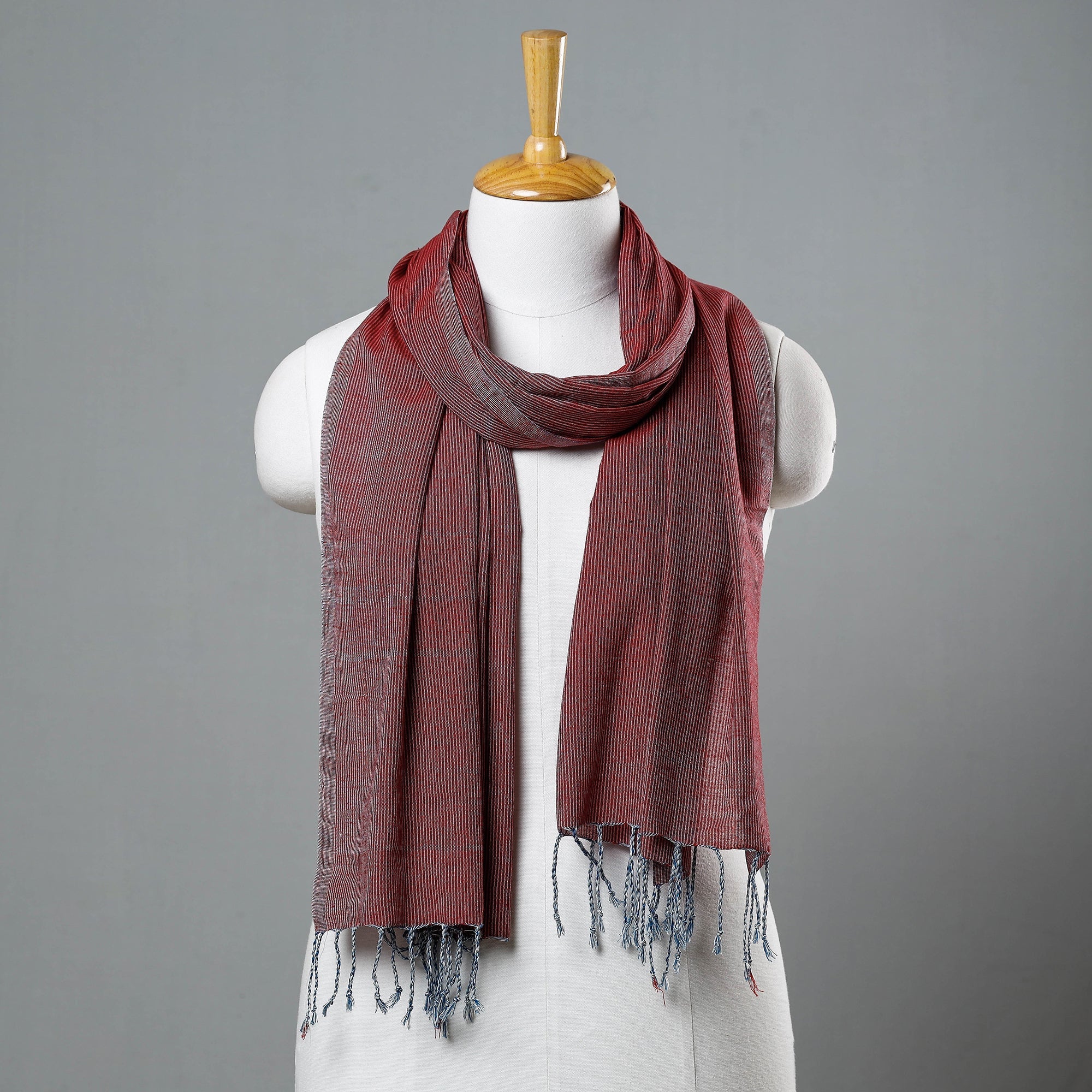 Fine quality mangalagiri handloom cotton stole with tassels. Crafted with precision and passion, this stole showcases the exquisite artistry of mangalagiri handloom weaving. woven from pure, soft cotton, it offers a luxurious drape and exceptional comfort. making it a versatile accessory for both casual and formal occasions made using azo free dye colours from the east godavari and krishna district of andhra pradesh.