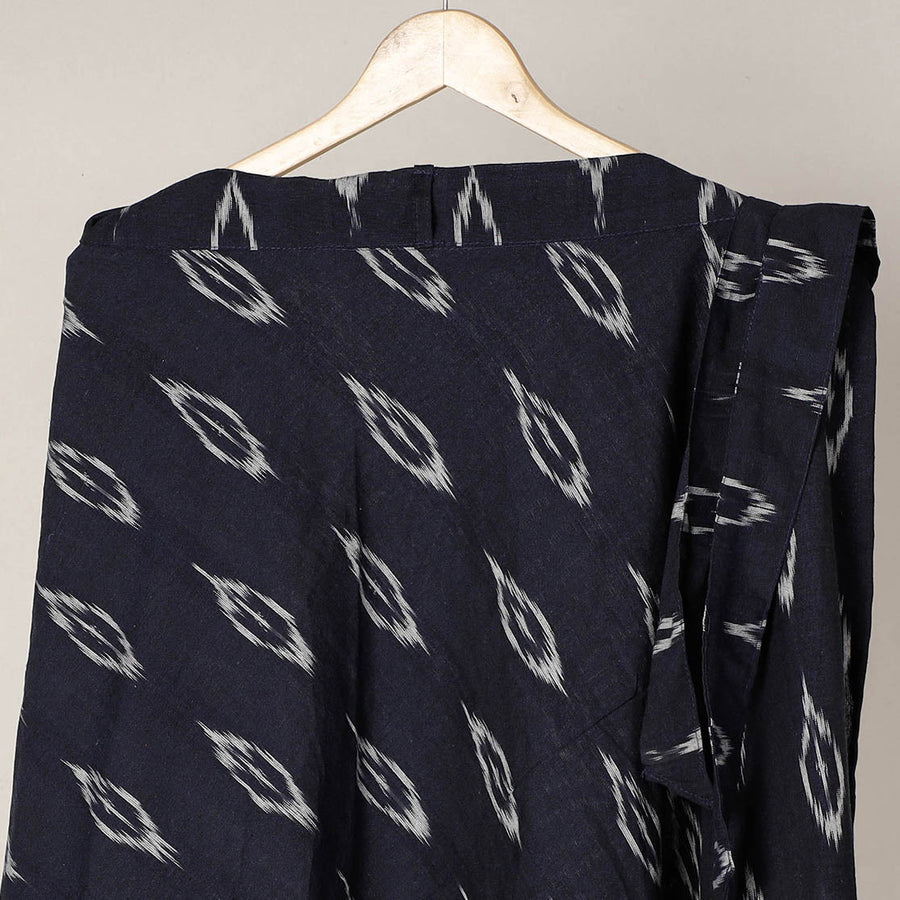 Elevate your style with this fine-quality black pochampally ikat weave pure cotton wrap around skirt. Featuring a waist tie-up closure, this skirt is not only stylish but also comfortable to wear. The ikat (ikkat) dyeing technique used in this skirt creates beautiful patterns and designs, making it a standout piece in your wardrobe. Step out in style with this exquisite pochampally ikat wrap around skirt that showcases the beauty of traditional Indian textiles and craftsmanship.