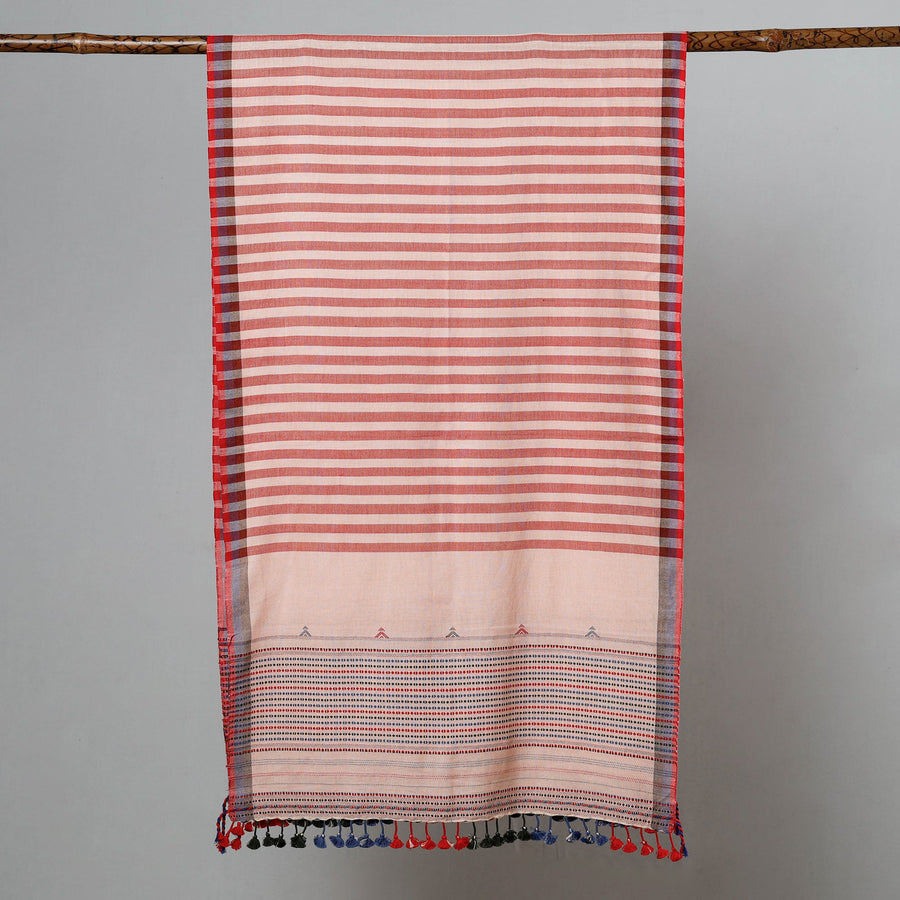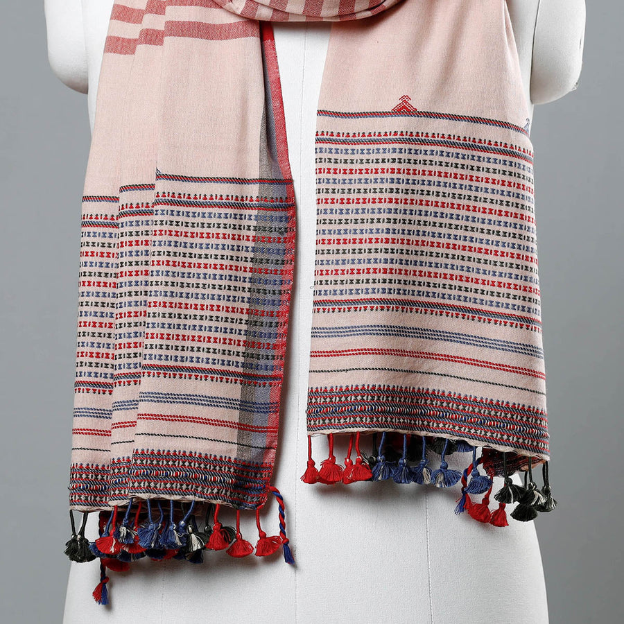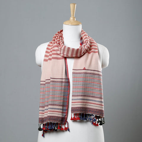 Fine quality kutch bhujodi hand weaving organic fine cotton stole with tassels. This stole is made with 100% certified organic cotton with azo free dye colours. 'Bhujodi' weaving is a craft that takes its name from 'Bhujodi', a small village in 'Kutch' where this craft is practiced.