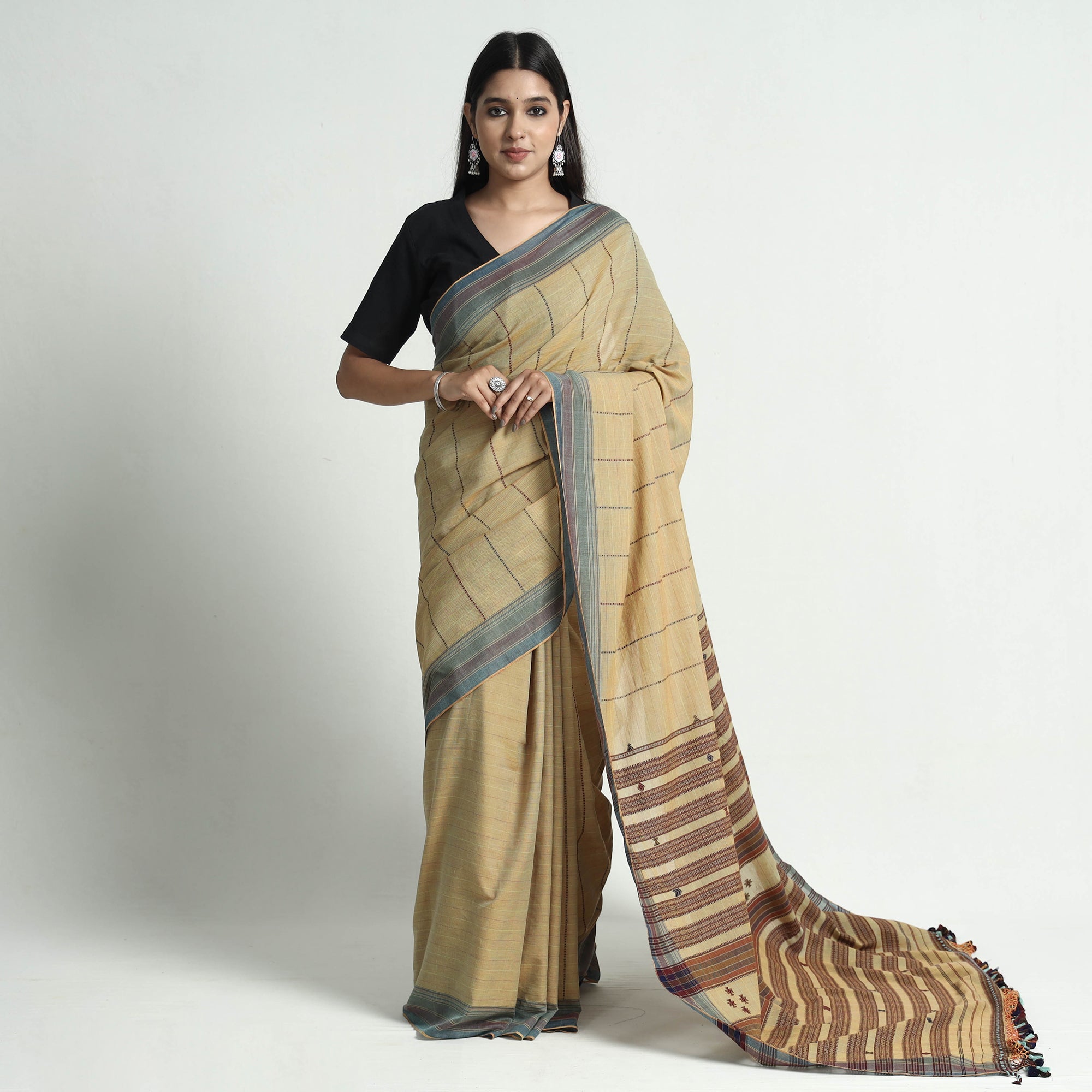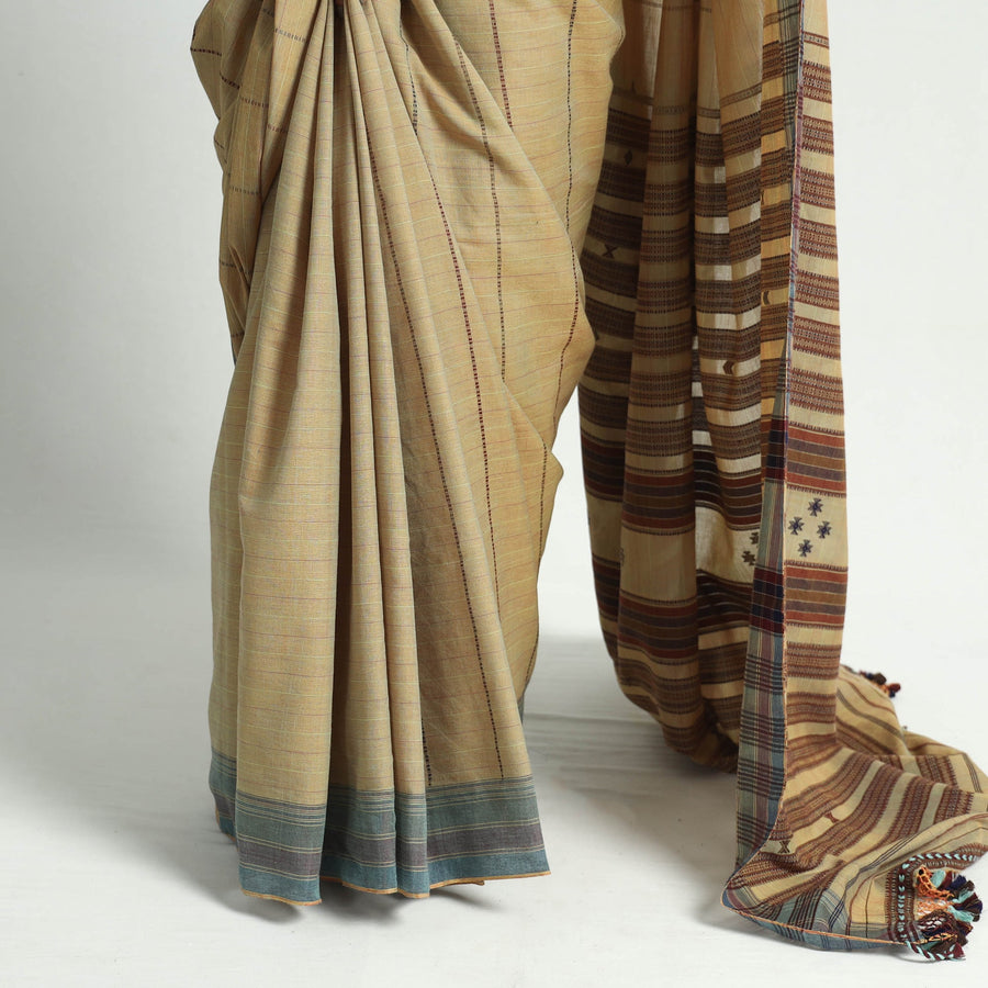 Kutch bhujodi weaving Handloom fine cotton saree with tassels. Crafted by skilled artisans, this saree is a masterpiece of traditional weaving techniques from the Kutch region. The fine cotton fabric is lightweight and breathable, making it perfect for various occasions