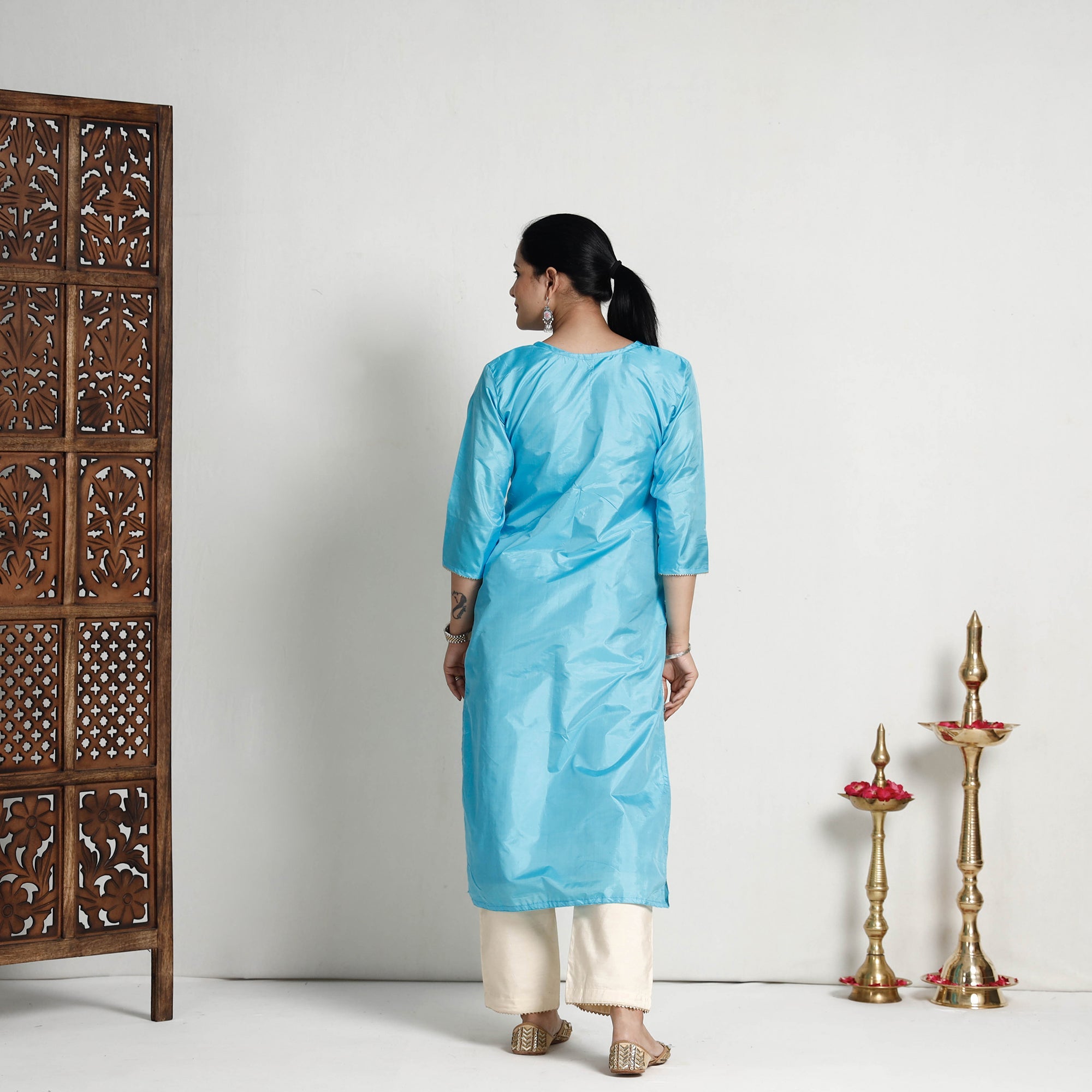 This plain pure silk long kurta is a perfect blend of style and comfort. This kurta is crafted from plain pure silk fabric, ensuring a comfortable feel against your skin. The kurta also features a convenient one-side pocket, perfect for carrying small essentials. This silk kurta makes you comfortable all day long. Upgrade your wardrobe with this plain pure silk kurta.