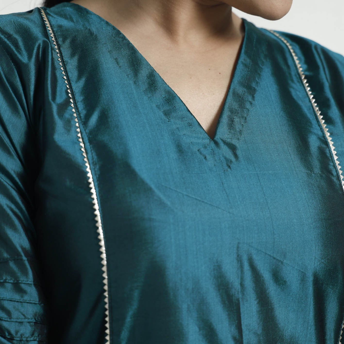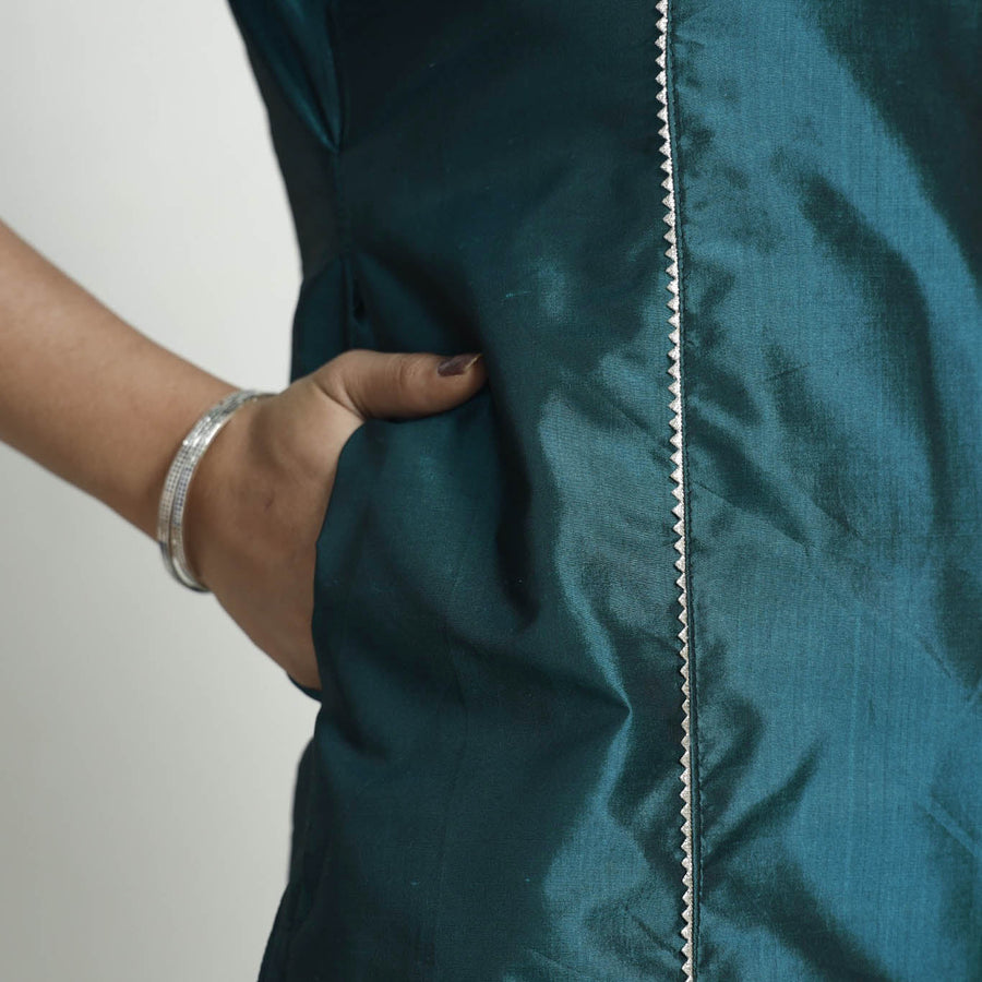This plain pure silk long kurta is a perfect blend of style and comfort. This kurta is crafted from plain pure silk fabric, ensuring a comfortable feel against your skin. The kurta also features a convenient one-side pocket, perfect for carrying small essentials. This silk kurta makes you comfortable all day long. Upgrade your wardrobe with this plain pure silk kurta.