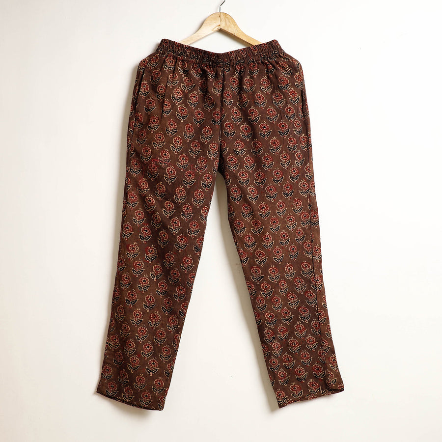 This ajrakh hand block printed cotton night suit set is crafted from natural dyed cotton fabric. The cotton fabric ensures a comfortable night's sleep. The pyjama features an elasticated waist and two side pockets for added convenience. The night suit will give you the freedom to customsize the fit to suit your unique shape. This night suit is beautiful and skin-friendly, and it allows you to move and sleep with ease and comfort.