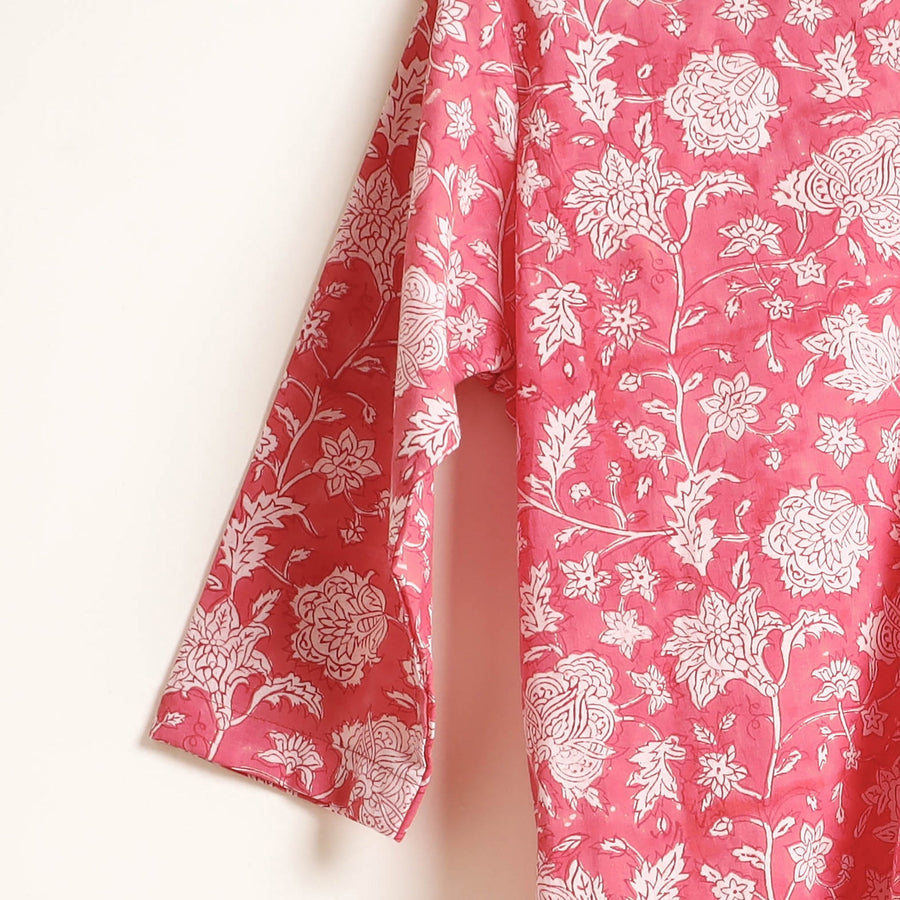 Pink - Cotton Hand Block Sanganeri Print Fabric 10