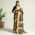 Brown - Desi Tussar Silk Handpainted Srikalahasti Pen Kalamkari Fabric in Natural Dyed Pure Handloom 19