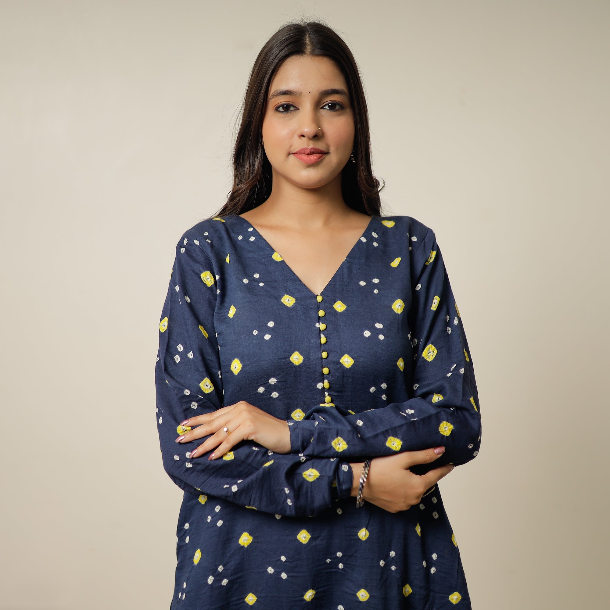This exquisite bandhani tie-dye cotton a-line kurta is a perfect blend of style and comfort. This kurta is crafted from soft cotton fabric, ensuring a comfortable feel against your skin. The kurta also features a convenient one-side pocket, perfect for carrying small essentials. This cotton kurta makes you comfortable all day long. This kurta is perfect for your daily outing and for a special occasion.