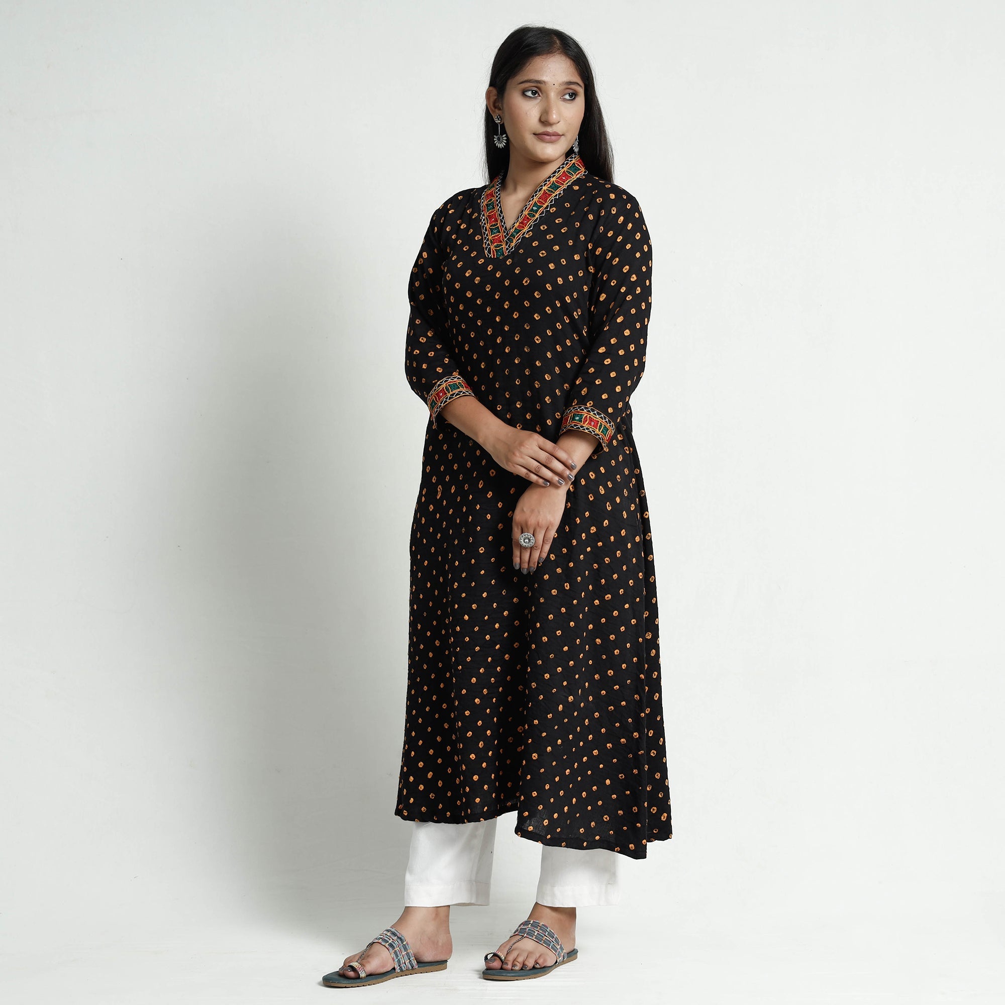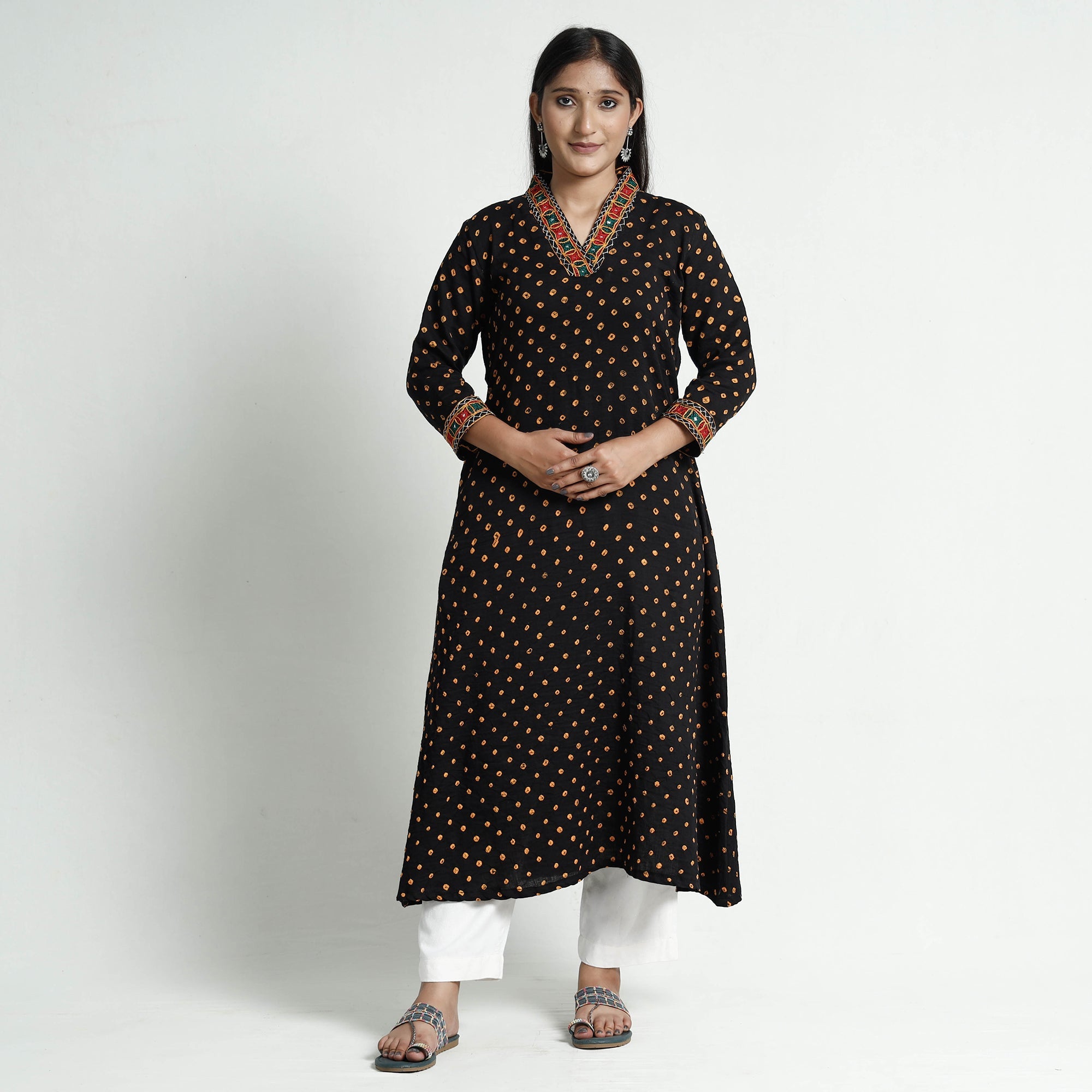 This exquisite bandhani tie-dye cotton a-line kurt is a perfect blend of style and comfort. This kurta is crafted from soft cotton fabric, ensuring a comfortable feel against your skin. The kurta also features a convenient one-side pocket, perfect for carrying small essentials. This cotton kurta makes you comfortable all day long. This kurta is perfect for your daily outing and for a special occasion.