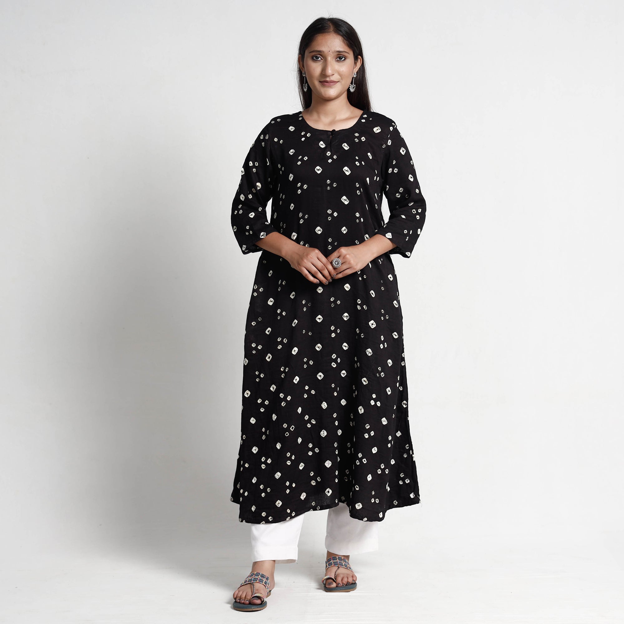 This exquisite bandhani tie-dye cotton a-line kurta is a perfect blend of style and comfort. This kurta is crafted from soft cotton fabric, ensuring a comfortable feel against your skin. The kurta also features a convenient one-side pocket, perfect for carrying small essentials. This cotton kurta makes you comfortable all day long. This kurta is perfect for your daily outing and for a special occasion.