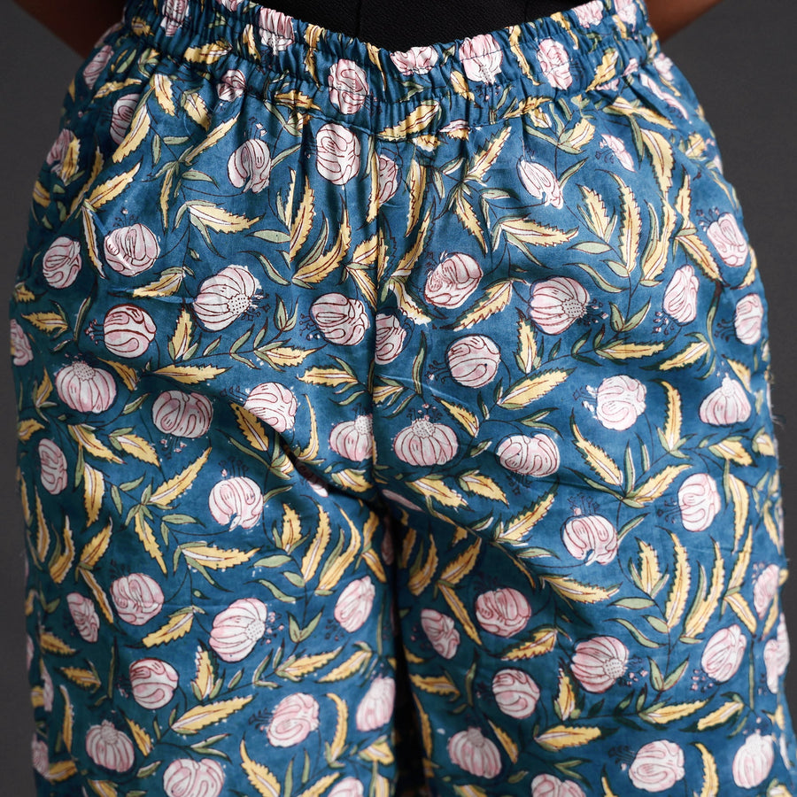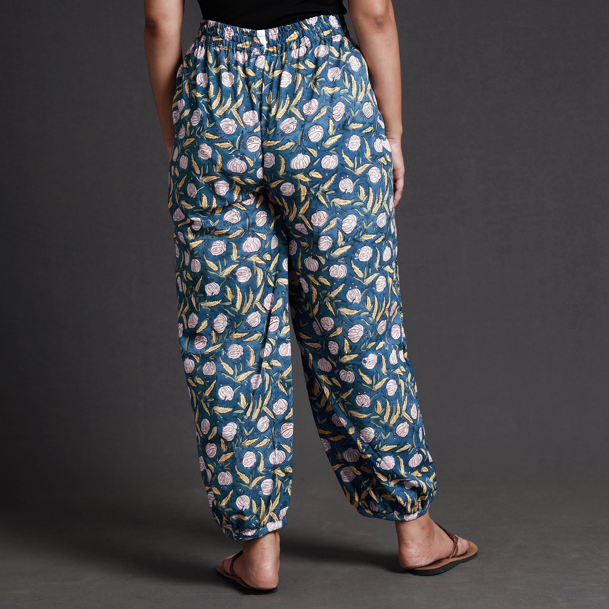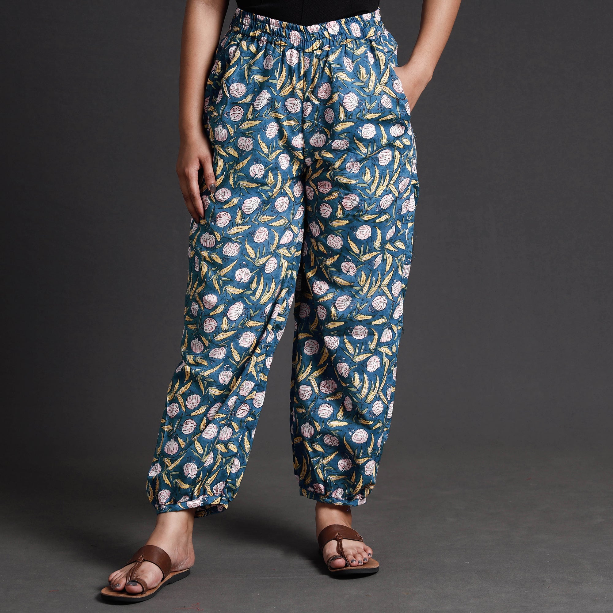 Stay comfortable and stylish in this sanganeri hand block-printed cotton elasticated waist afghani salwar. This cotton salwar features an elasticized waist for great fit while the two side pockets add functionality to this salwar. This cotton salwar makes you feel comfortable and stylish all day long. This salwar is perfect for your daily outings. Sanganeri is a hand-block printing technique originating from Sanganer, a village in the southern part of Jaipur, Rajasthan. Bleed free VAT dyes used.