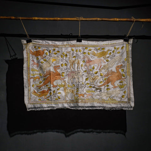 | Material | This exquisite bengal kantha hand embroidery tussar silk wall hanging, designed with contemporary patterns & has been hand embroidered using West Bengal's traditional craft technique of Kantha. Elevate your living space with this exquisite wall hanging. Its versatile design adds sophistication to any room, serving as a unique piece of art or a decorative accent. |