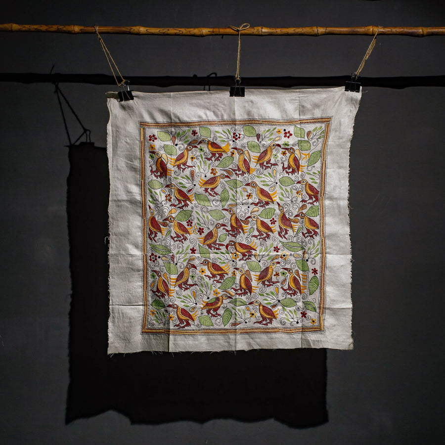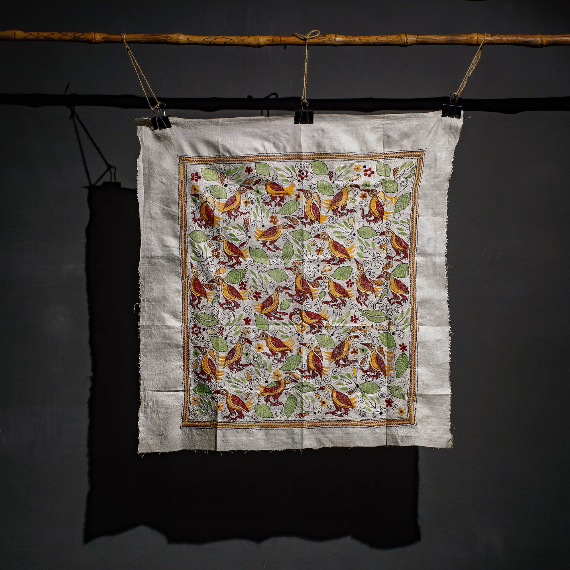 | Material | This exquisite bengal kantha hand embroidery tussar silk wall hanging, designed with contemporary patterns & has been hand embroidered using West Bengal's traditional craft technique of Kantha. Elevate your living space with this exquisite wall hanging. Its versatile design adds sophistication to any room, serving as a unique piece of art or a decorative accent. |