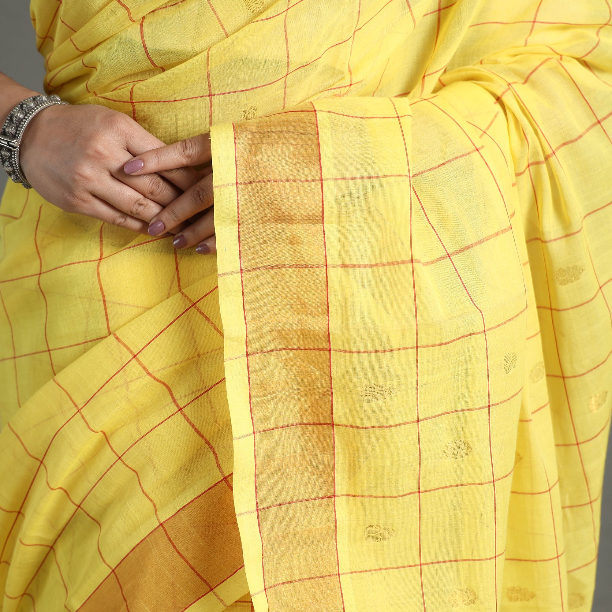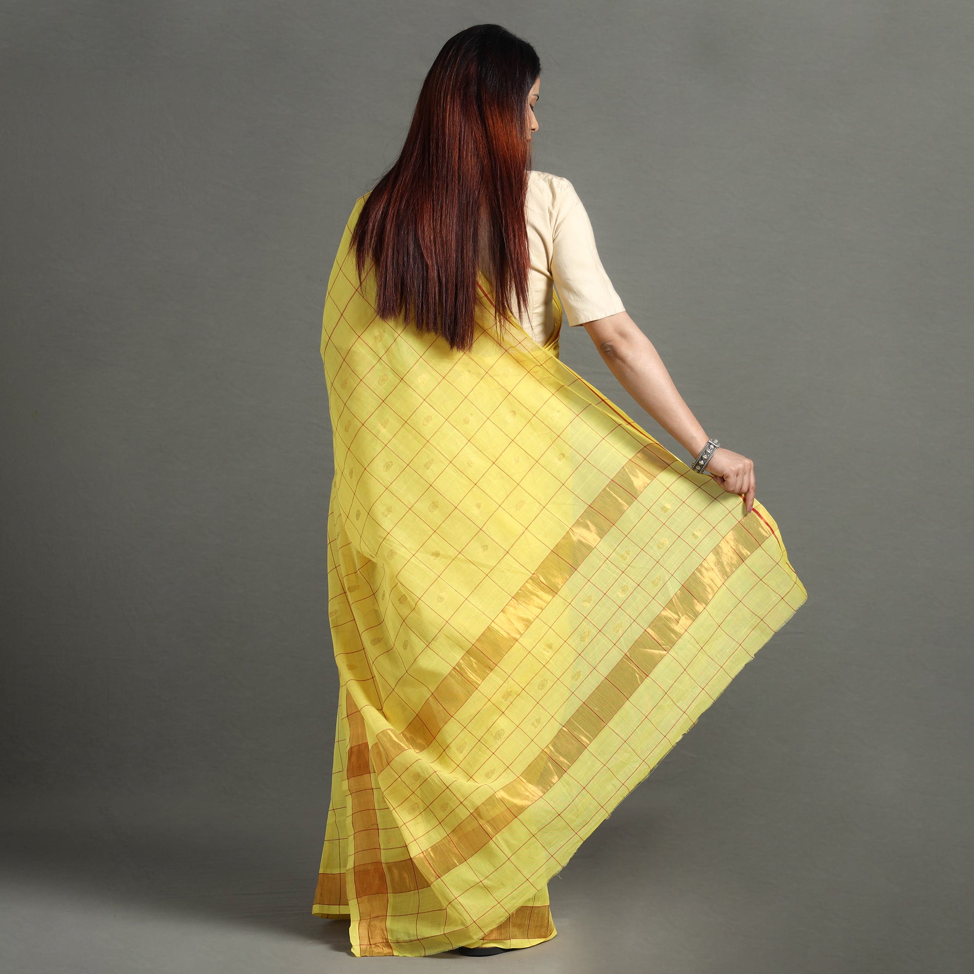 This traditional venkatagiri handloom cotton checks saree with thread and zari buti is woven by the master weavers of Venkatagiri, Andhra Pradesh. Skilled weavers from Venkatagiri employ intricate traditional handloom weaving techniques to create these sarees, incorporating intricate zari or thread motifs, showcasing the rich heritage of Andhra Pradesh. The Venkatagiri Saree is a saree style woven in Venkatagiri of Nellore district in the Indian state of Andhra Pradesh. Venkatagiri sarees are known for their fine weaving.