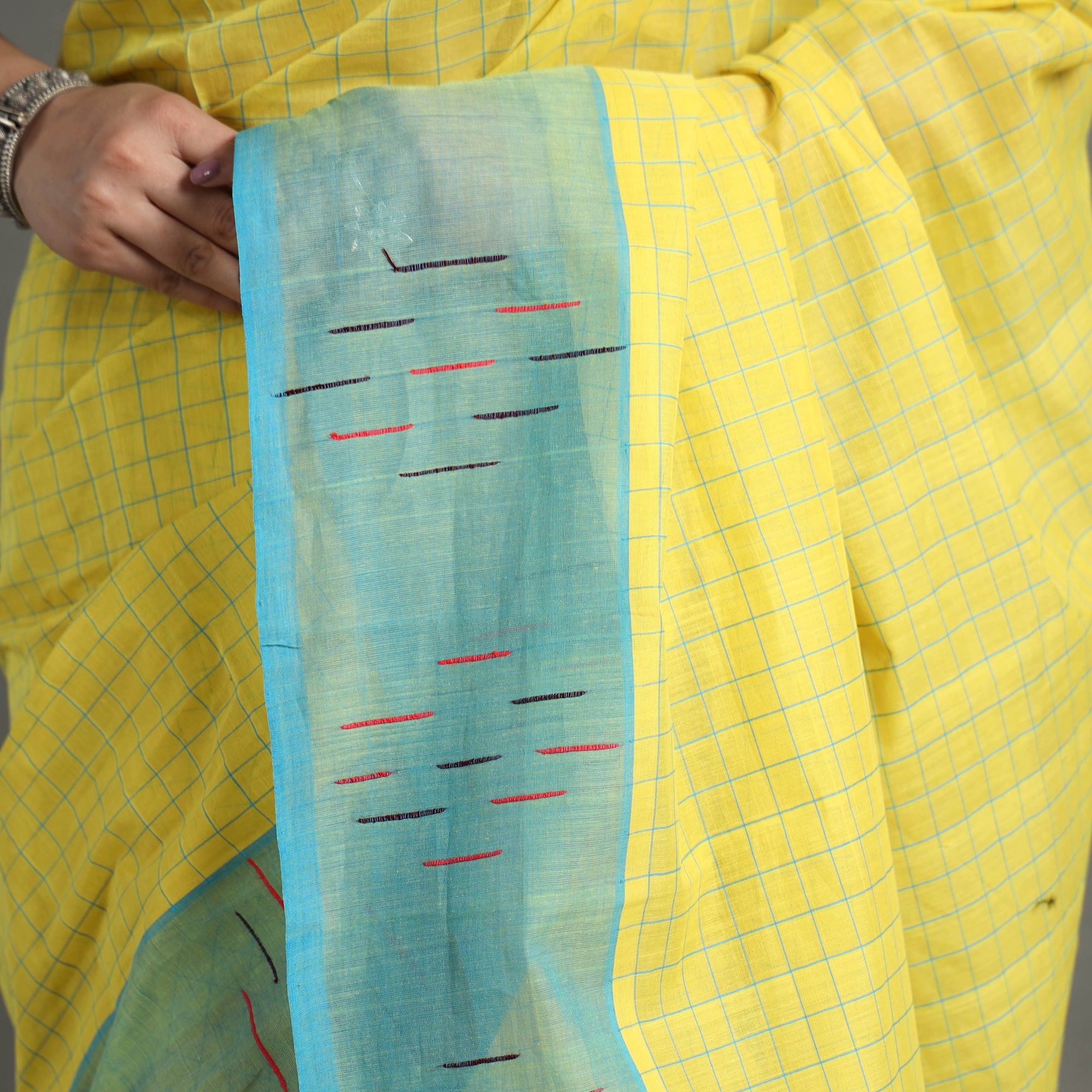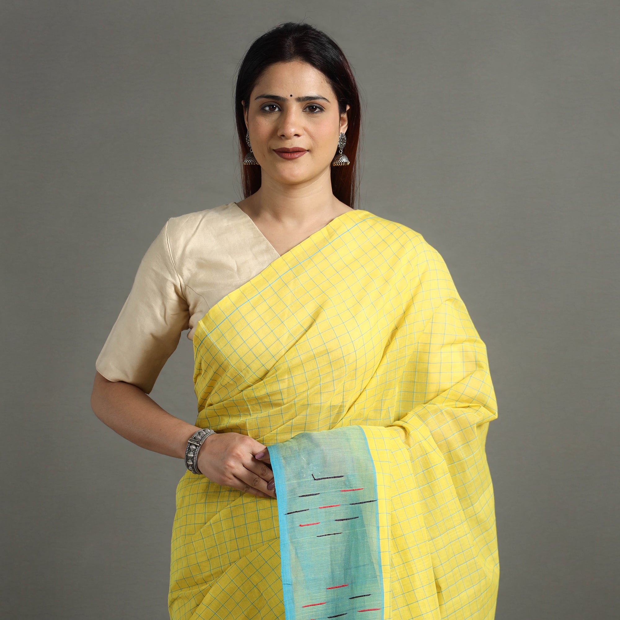 This traditional venkatagiri handloom cotton checks saree is woven by the master weavers of Venkatagiri, Andhra Pradesh. Skilled weavers from Venkatagiri employ intricate traditional handloom weaving techniques to create these sarees, incorporating intricate zari or thread motifs, showcasing the rich heritage of Andhra Pradesh. The Venkatagiri Saree is a saree style woven in Venkatagiri of Nellore district in the Indian state of Andhra Pradesh. Venkatagiri sarees are known for their fine weaving.