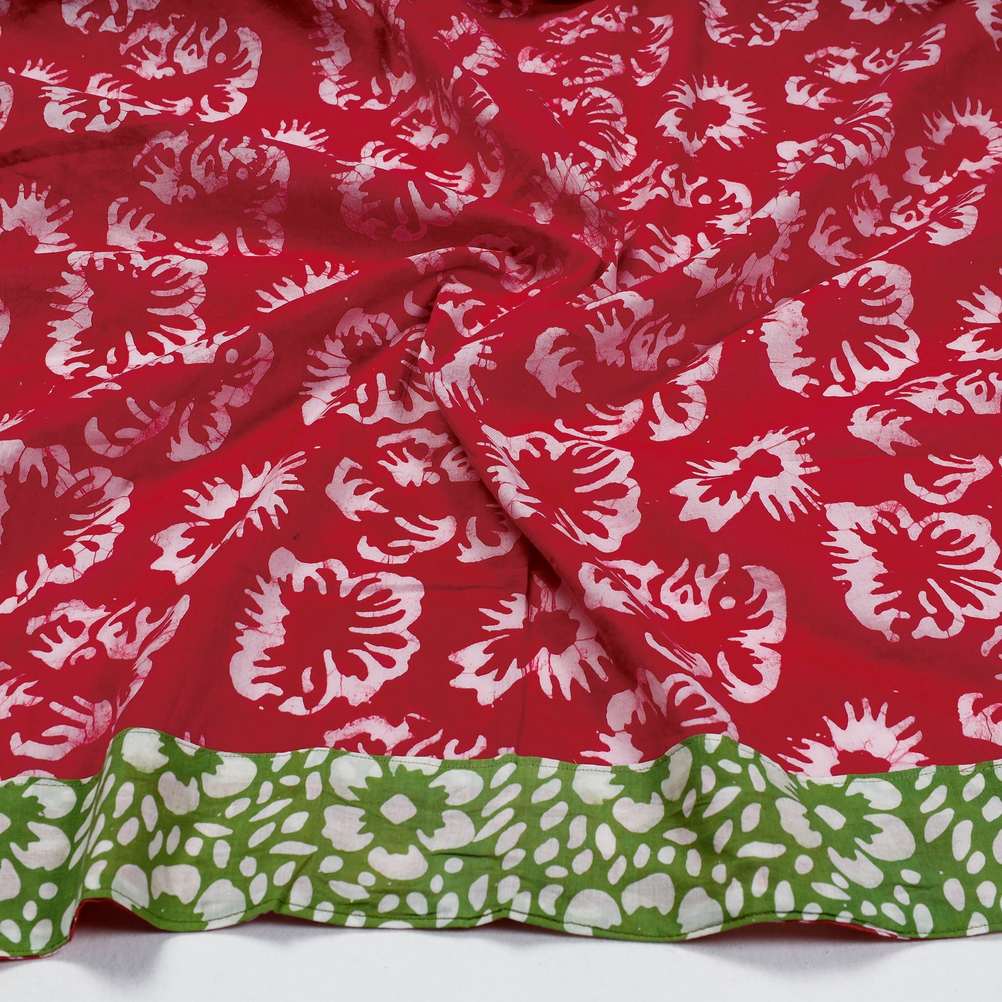 Batik is a very famous technique of wax-resist dyeing applied to whole cloth. The traditional designs and motifs in Indian batik are exceptional. It is a type of resist printing process wherein wax is applied to the fabric in specific areas.