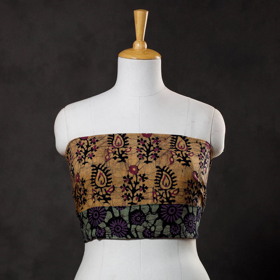 Fine quality brown hand batik printed blouse material, expertly crafted from of high-quality cotton material and adorned with traditional handmade textiles of India. This versatile mix and match blouse material is perfect to pair with any saree, adding a touch of elegance to your ensemble. Made with the finest quality materials, this blouse material ensures comfort and style, making it a must-have addition to your wardrobe.