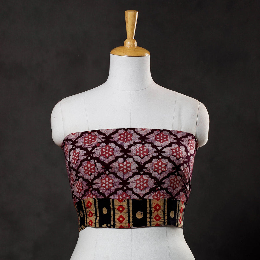 Fine quality purple hand batik printed blouse material, expertly crafted from of high-quality cotton material and adorned with traditional handmade textiles of India. This versatile mix and match blouse material is perfect to pair with any saree, adding a touch of elegance to your ensemble. Made with the finest quality materials, this blouse material ensures comfort and style, making it a must-have addition to your wardrobe.