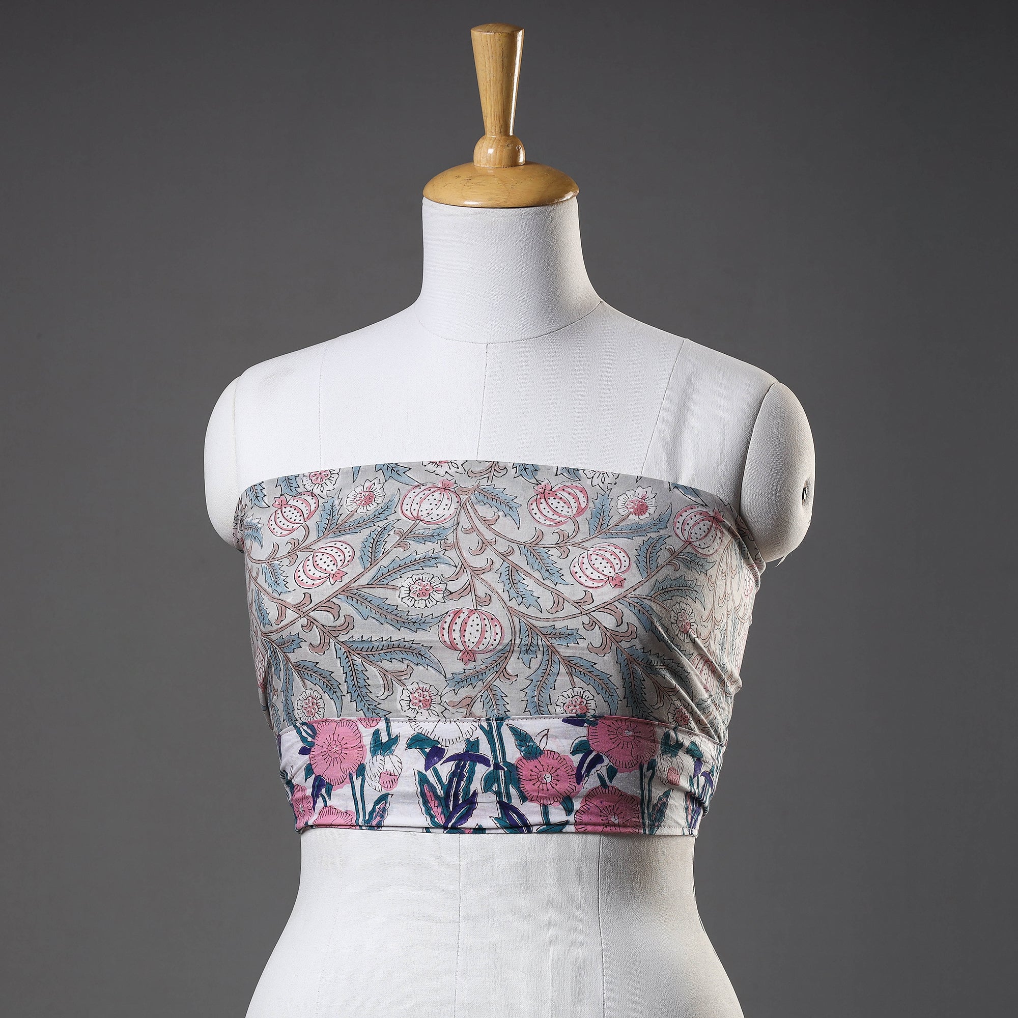 Fine quality sanganeri block printed blouse piece made from mix & matched cotton fabrics & textured with handmade textiles of India. This mix & match blouse material will go with almost all of your sarees & enhance your look.