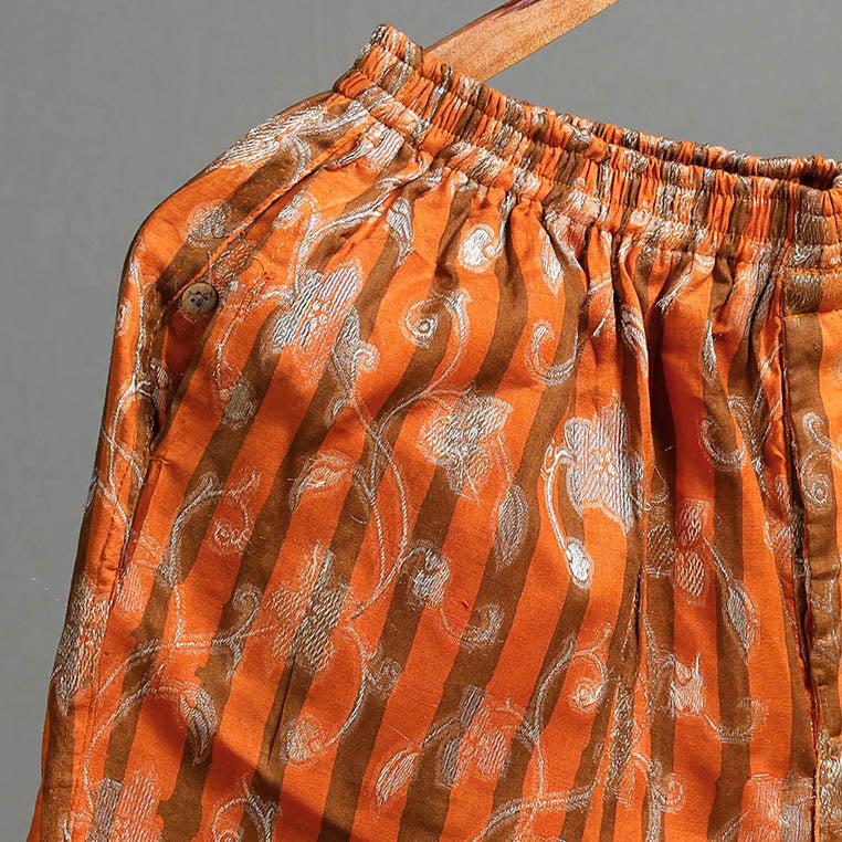 Orange - Hand Block Kutch Batik Print Cotton 3pc Unstitched Dress Material 34