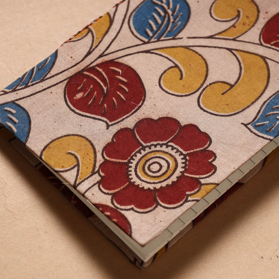 | Material | This hardbound notebook features a cover made of beige kalamkari cotton fabric with handmade paper pages. The paper is eco-friendly, made from recycled cotton, paper, and other natural fiber waste without the use of chemicals. Master artisans handcraft each notebook with attention to detail using traditional bookbinding techniques. |