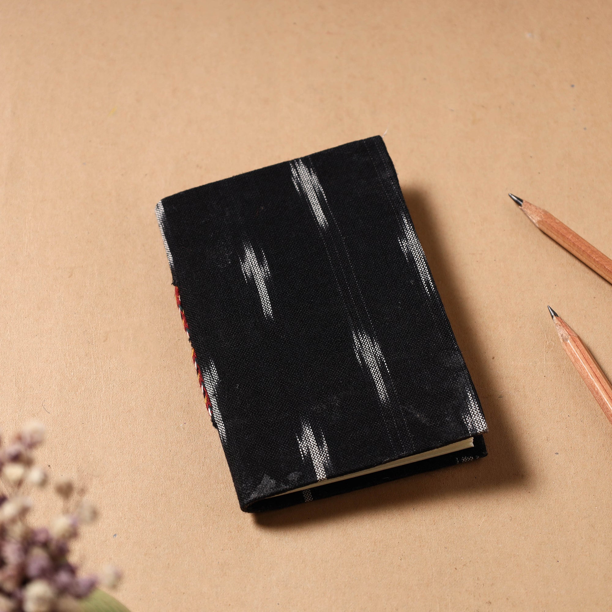| Material | This hardbound notebook features a cover made of ikat cotton fabric with handmade paper pages. The paper is eco-friendly, made from recycled cotton, paper, and other natural fiber waste without the use of chemicals. Master artisans handcraft each notebook with attention to detail using traditional bookbinding techniques. |