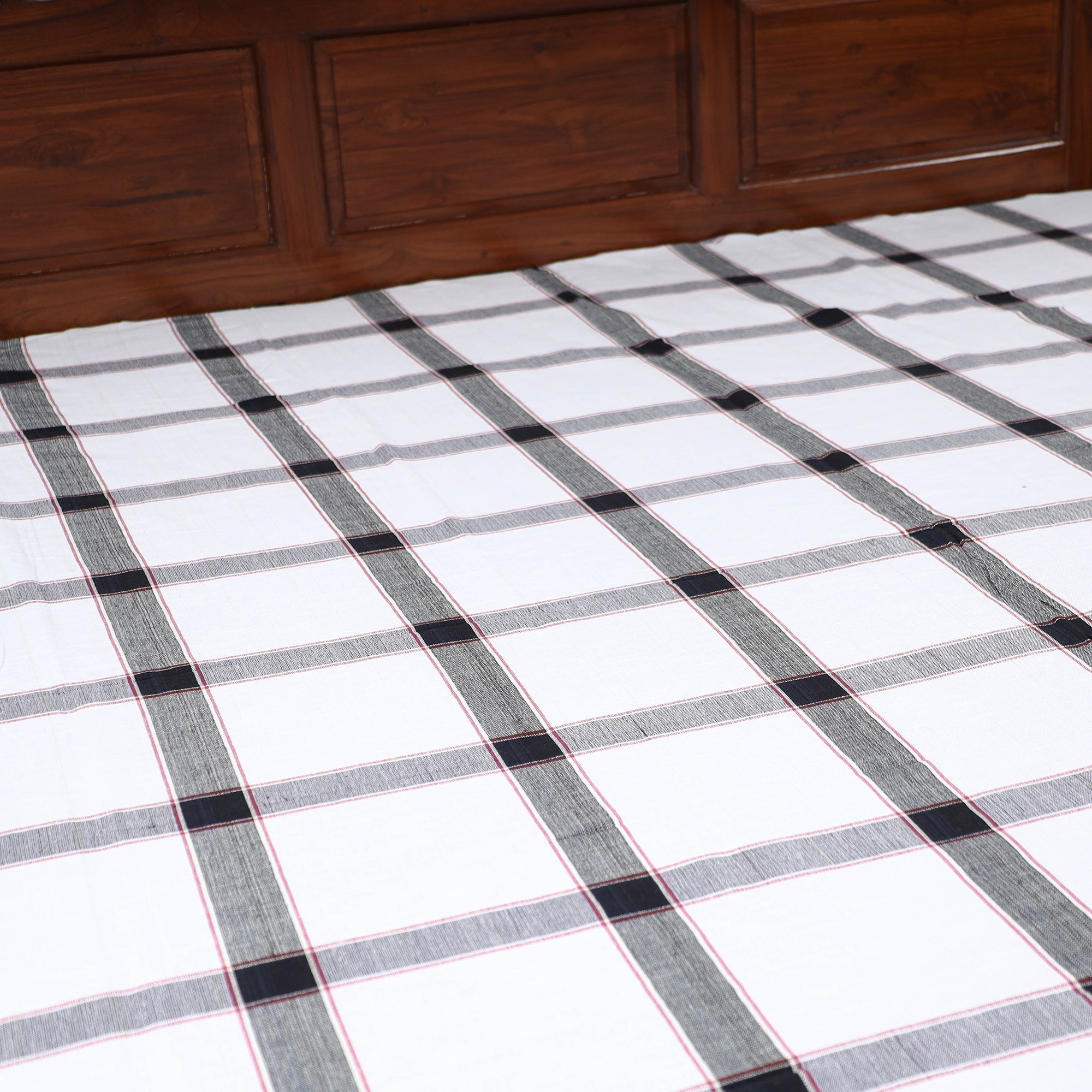 This pure handloom cotton double bed cover is an exquisite and comfortable addition to any bedroom. Made from high-quality cotton, it is durable and perfect for a good night's sleep. With a beautiful design and weaving pattern, it adds a touch of elegance and style to your room. The handloom process ensures that each piece is unique and of the highest quality. Hand-woven cotton is known for its breathability as compared to mill-made cotton.