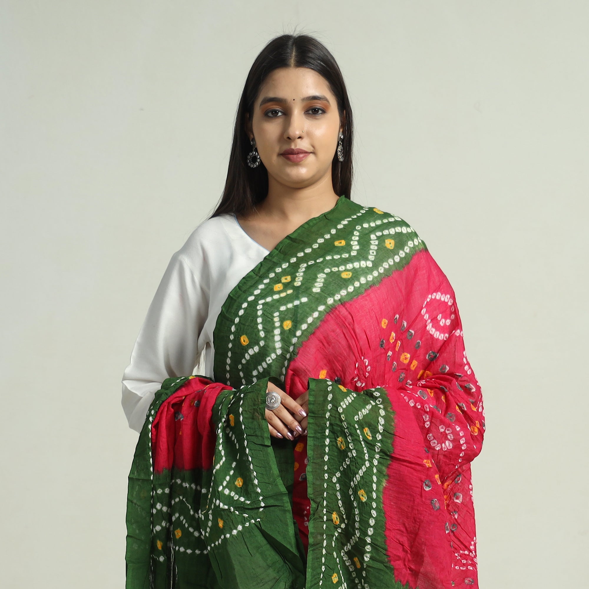 | Material | This fine-quality bandhani tie-dye mul cotton dupatta is skillfully crafted by the artisans of kutch using the traditional bandhani tie-dye technique. The dupatta features a majestic bandhani pattern, created by tying the fabric with thread at several points before dyeing it. The result is a beautiful, intricate pattern that is unique to each piece. The mul cotton fabric is lightweight and breathable, making it a perfect addition to any wardrobe for any occasion. |