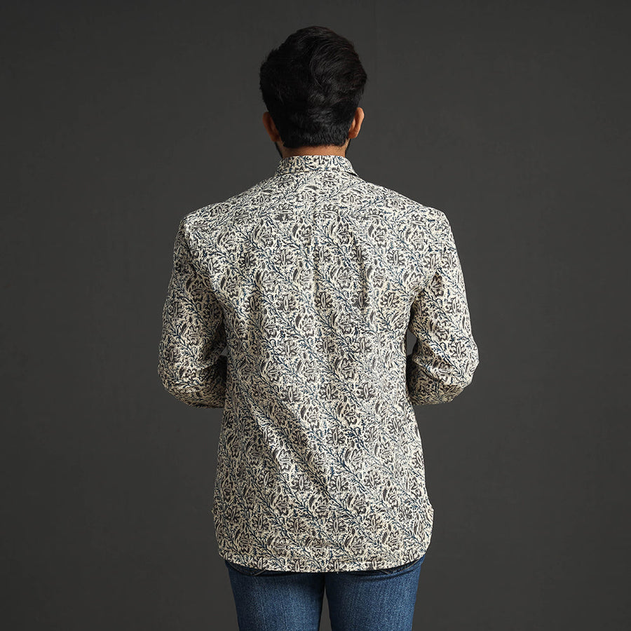 This exquisite pedana kalamkari hand block printed cotton men's full-sleeve shirt is a perfect blend of style and comfort. It's crafted from natural dyed cotton fabric, which ensures all-day comfort. This shirt features a regular collar and full sleeves, ideal for a casual yet sophisticated look. The crisp wooden buttons add a touch of natural charm, while the patch pocket on the front offers convenience and practicality. This shirt keeps you comfortable and stylish all day. It is perfect for casual wear.