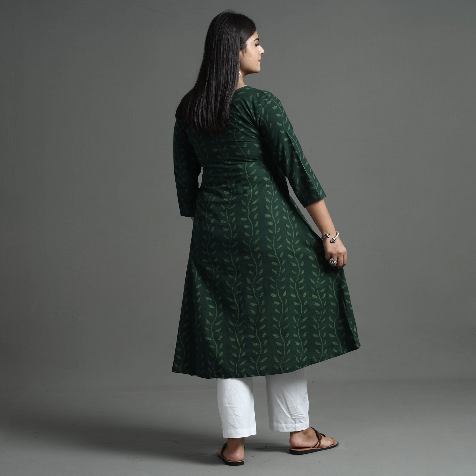 This uniquely designed akola hand block printed cotton long kurta is made using naturally dyed cotton fabric through the traditional mud resist process of hand block printing practised by the master artisans in Akola village of Rajasthan. The kurta also features a convenient one-side pocket, perfect for carrying small essentials. This cotton kurta makes you comfortable all day long. This kurta is perfect for your daily outing and for a special occasion.