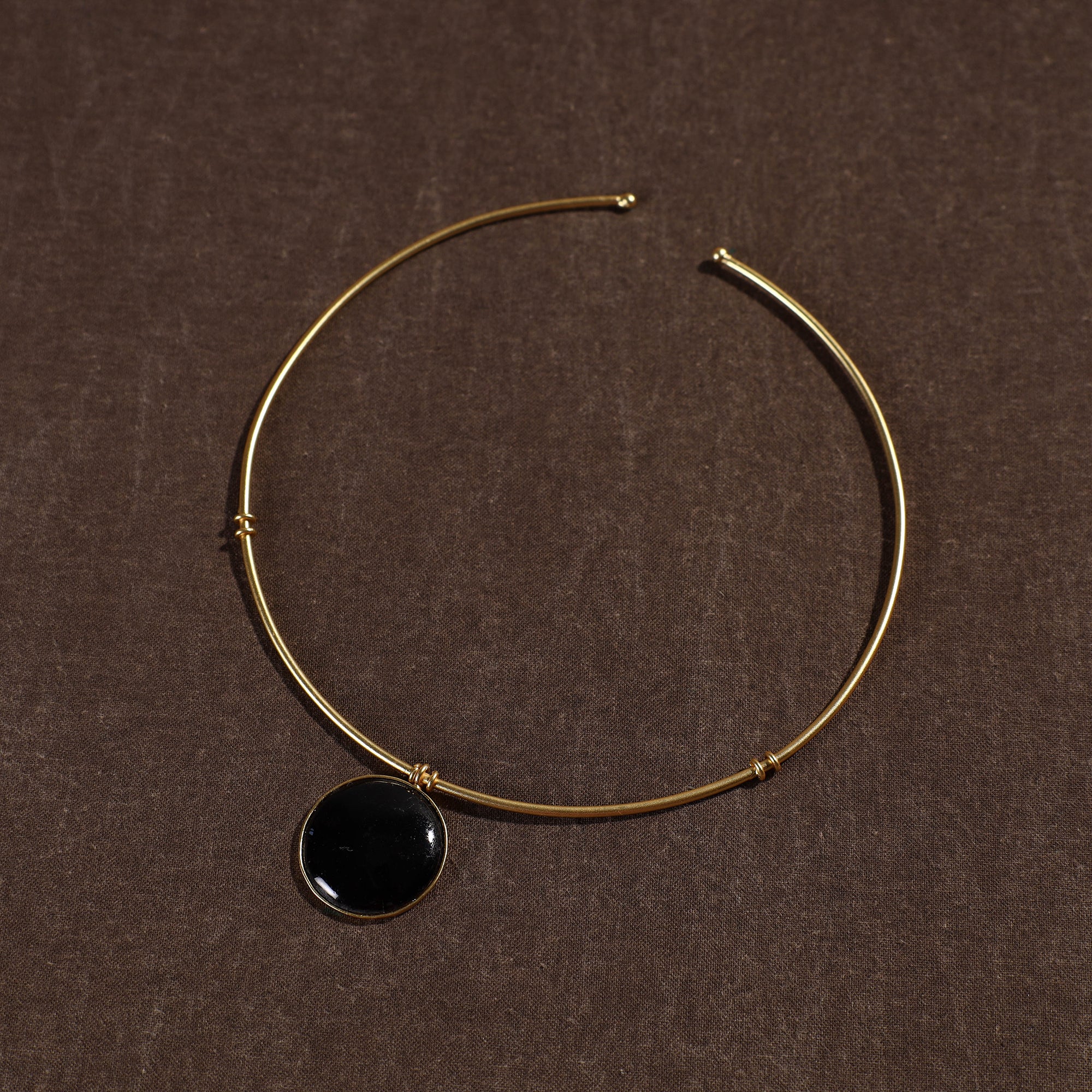 Elevate your style with our exquisite black handcrafted brass hasli necklace featuring a stunning meenakari pendant. This unique piece combines traditional craftsmanship with contemporary design. The intricate Meenakari work adds vibrant colors and intricate detailing, making it a perfect accessory for any special occasion or to enhance your everyday elegance. Meenakari is the art of coloring and ornamenting the surface of metals by fusing over it brilliant colors that are decorated in an intricate design.