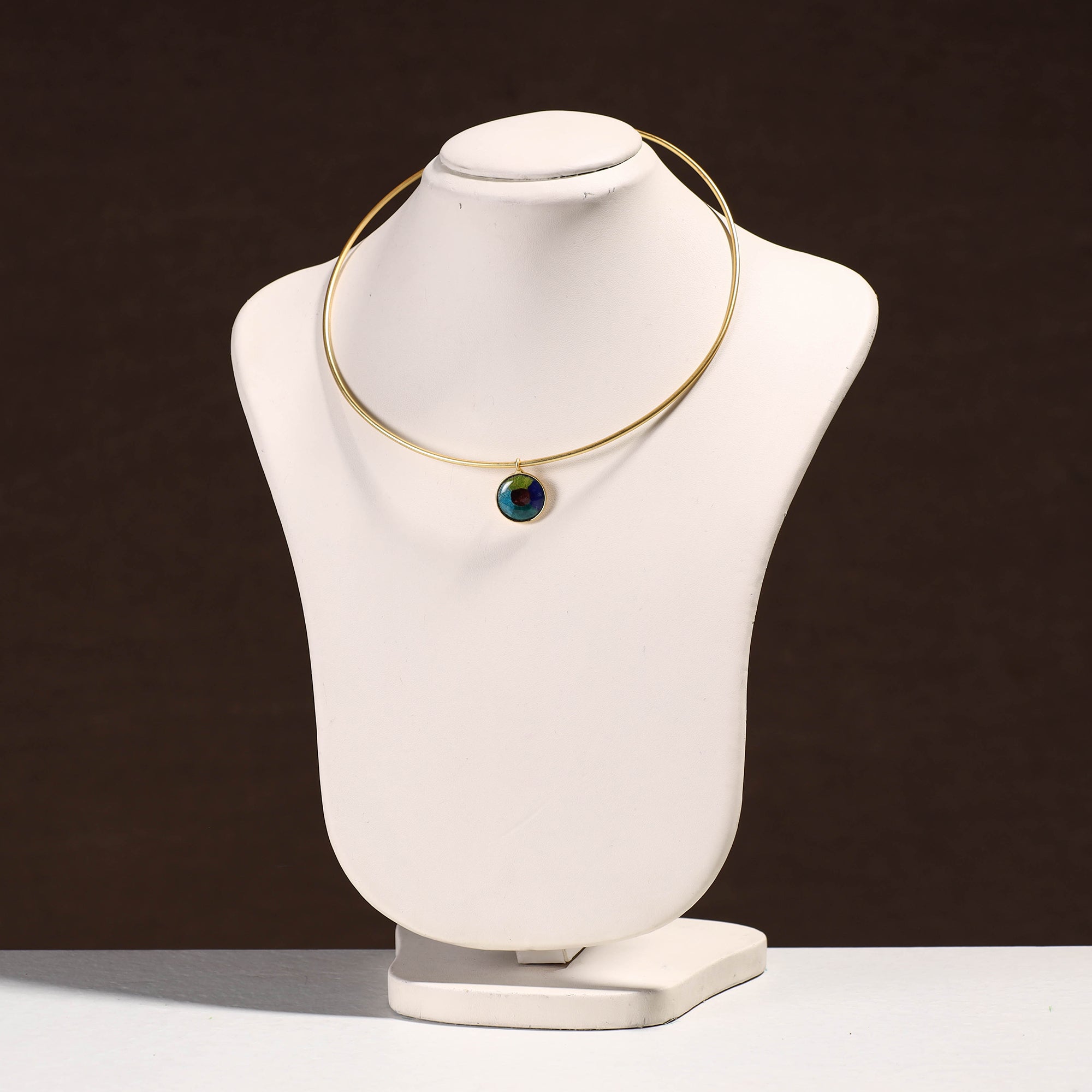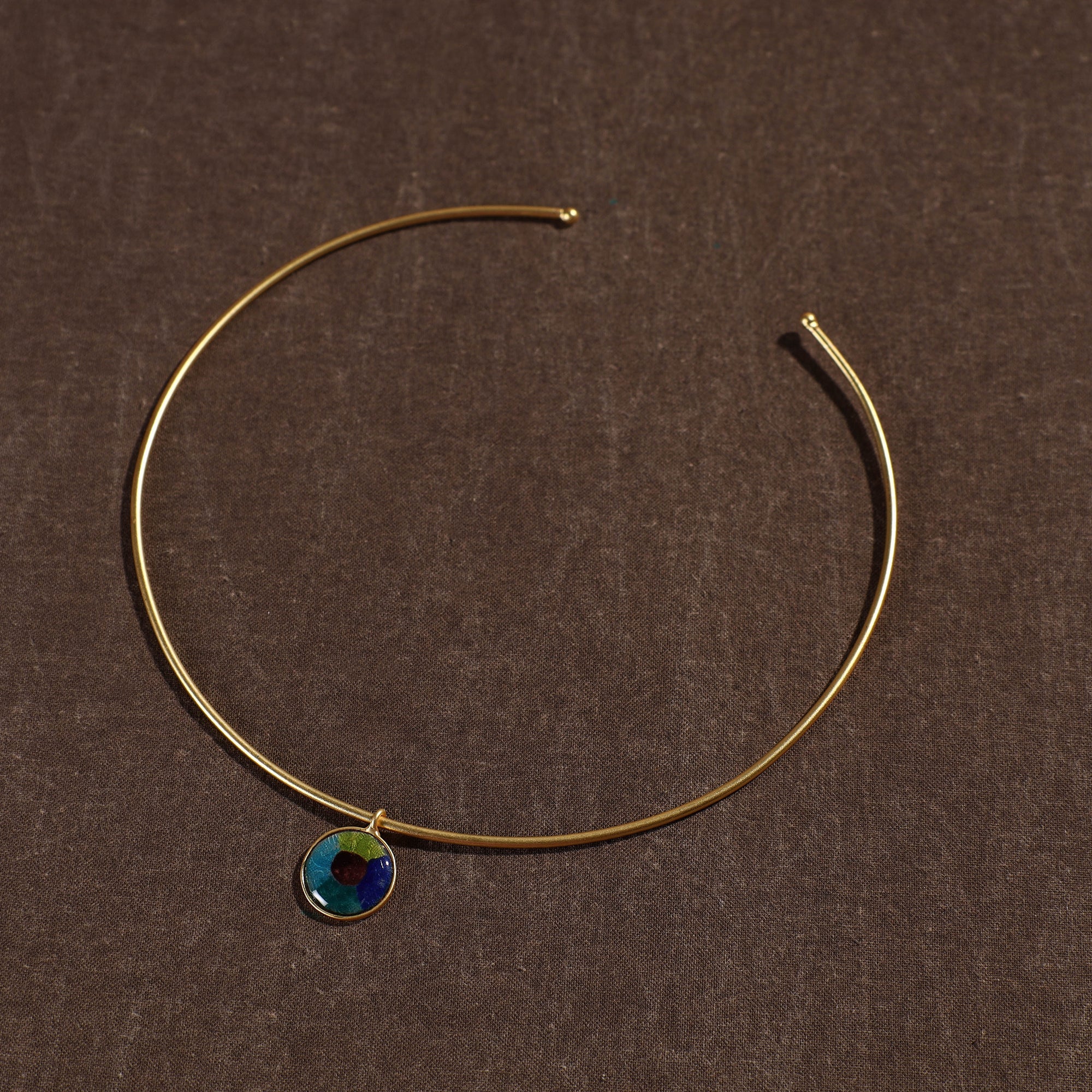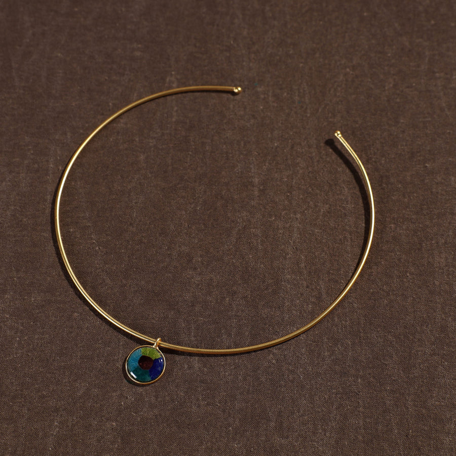 Elevate your style with our exquisite blue handcrafted brass hasli necklace featuring a stunning meenakari pendant. This unique piece combines traditional craftsmanship with contemporary design. The intricate Meenakari work adds vibrant colors and intricate detailing, making it a perfect accessory for any special occasion or to enhance your everyday elegance. Meenakari is the art of coloring and ornamenting the surface of metals by fusing over it brilliant colors that are decorated in an intricate design.