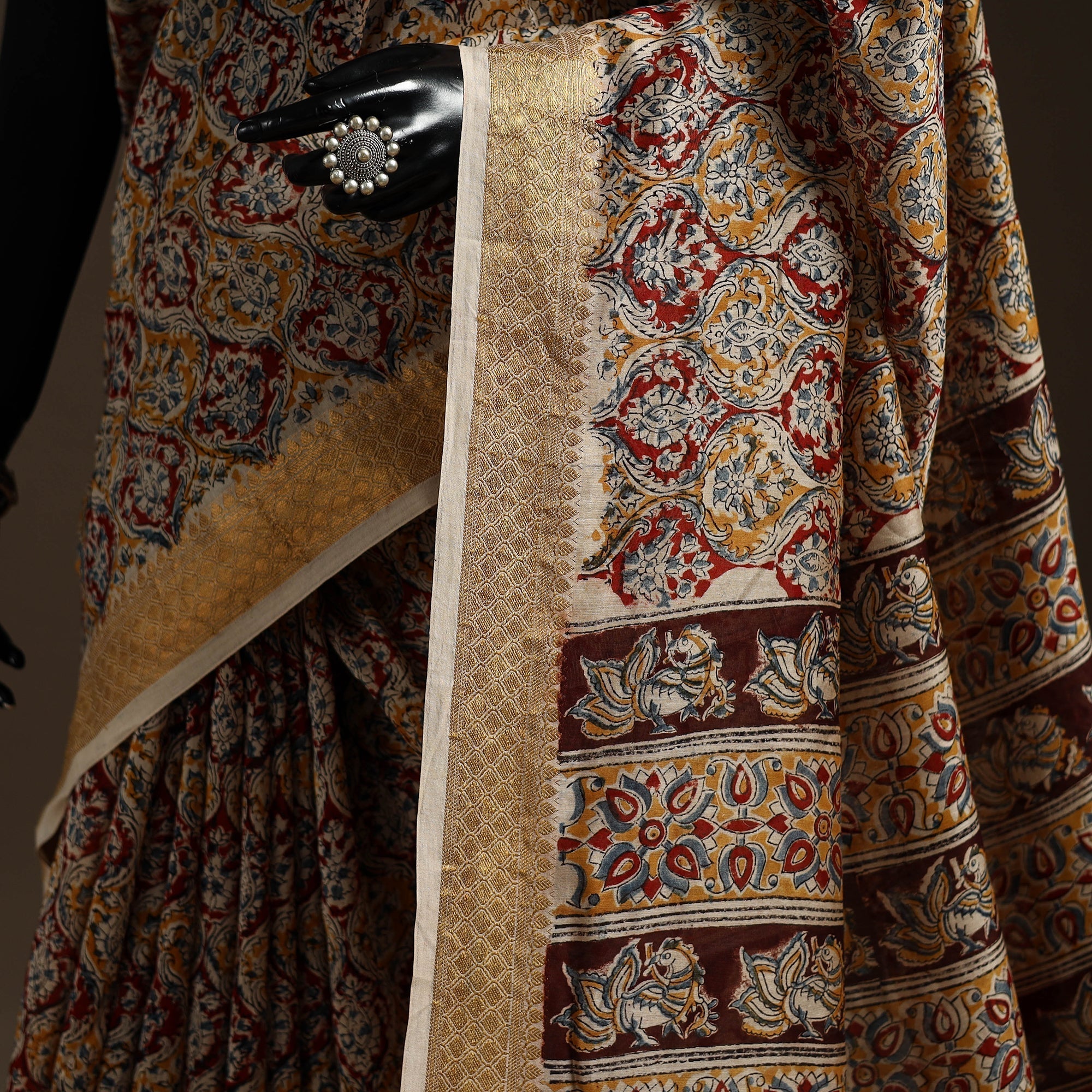 Kalamkari is a type of hand-painted or printed cotton fabric produced in Andhra Pradesh. This is a traditional printing method on cotton fabrics using natural materials without adding chemicals to cotton fabrics.